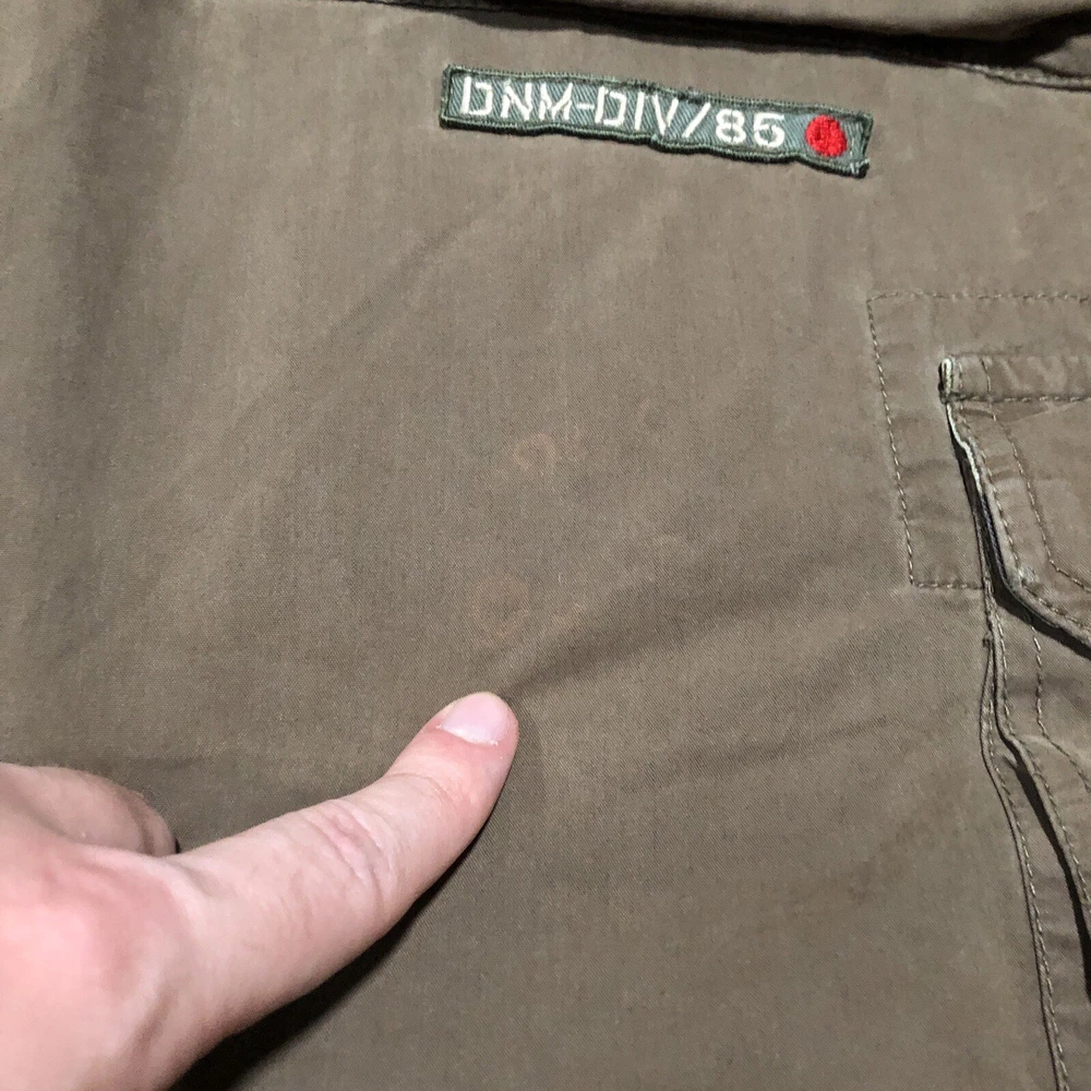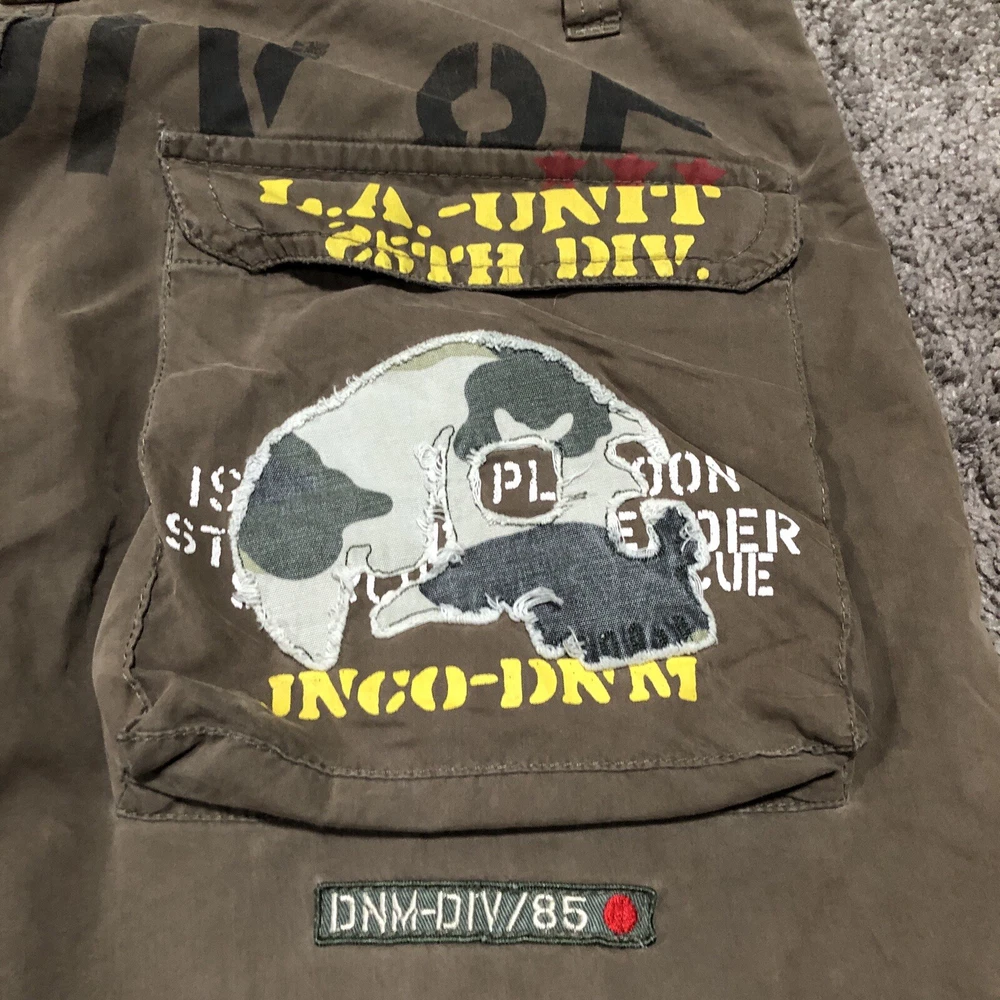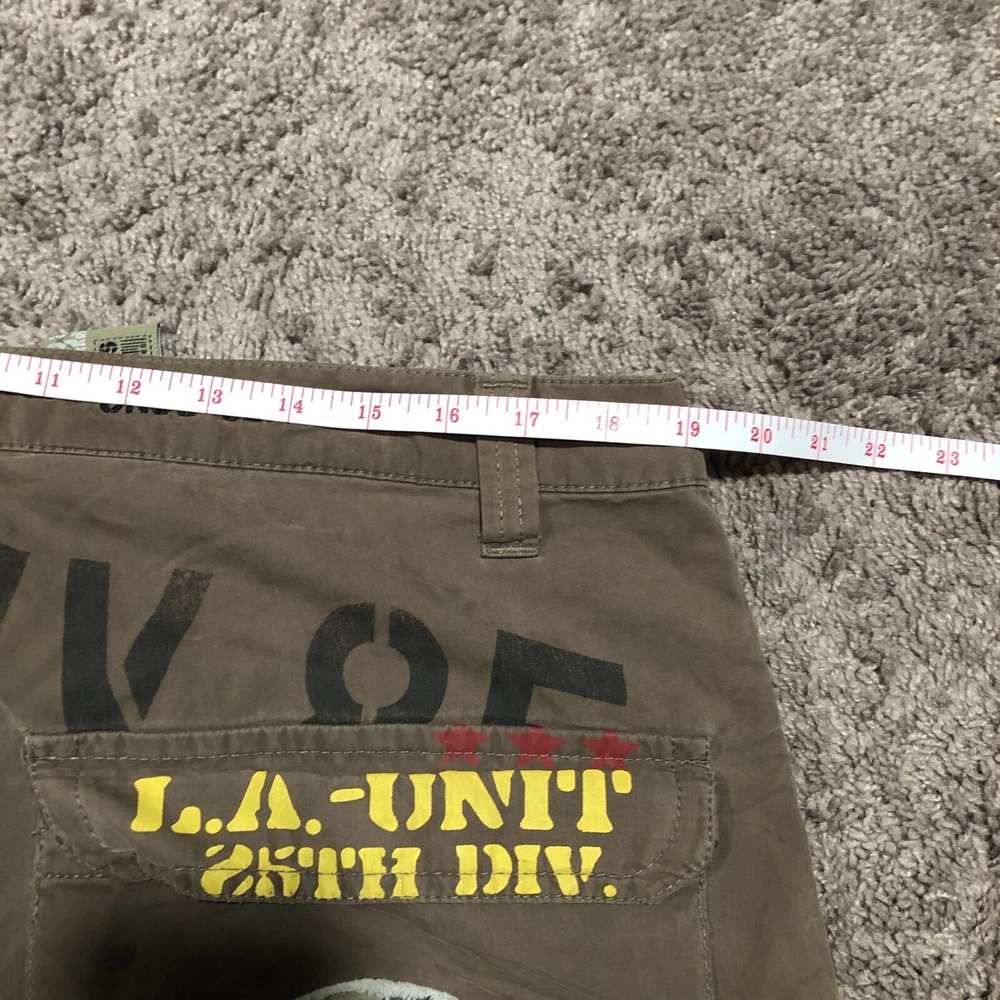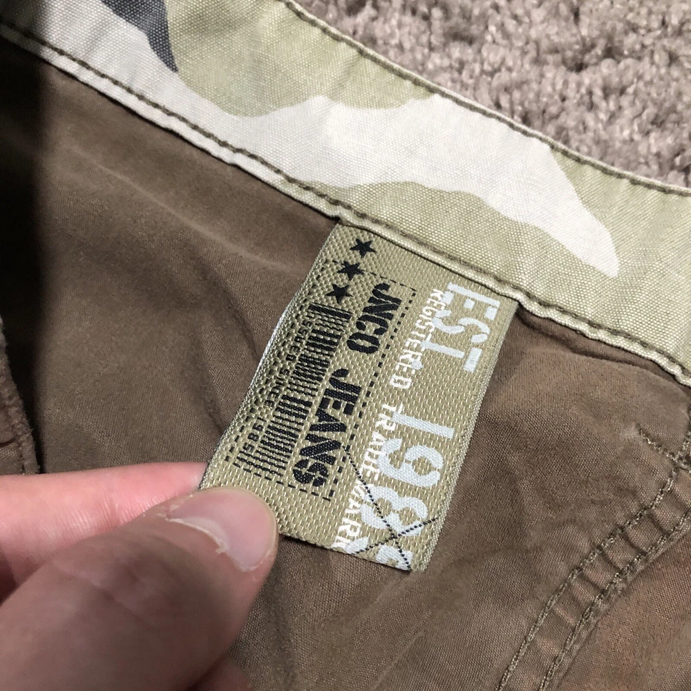 Vintage Y2K JNCO Jeans Baggy Army Cargo Pants Men’s 38x32 Brown LA Unit Skull Preowned Small grease spot on leg, and bottoms at ankle are cut some on the back. Hole starting at crotch bottom, could use patching up. A couple bleach spots on back and front waist. See pictures for overall condition Have some nice army style designs and patches Please see pics and ask questions before purchasing Thanks!