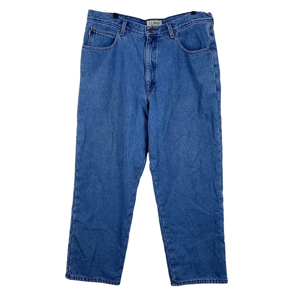 Vintage Y2K L.L. Bean Men’s Fleece Lined Jeans - Size 38x30 Great preowned condition! Fleece lined 5 pocket design Zip fly with button closure Half-waist: 18" Inseam: 28" Length: 40" Rise: 12" Measurements are lying flat, and estimates only. 1P35 3-7125 2 lb 5 oz Tags: retro, rugged, outdoor, warm, hiking,