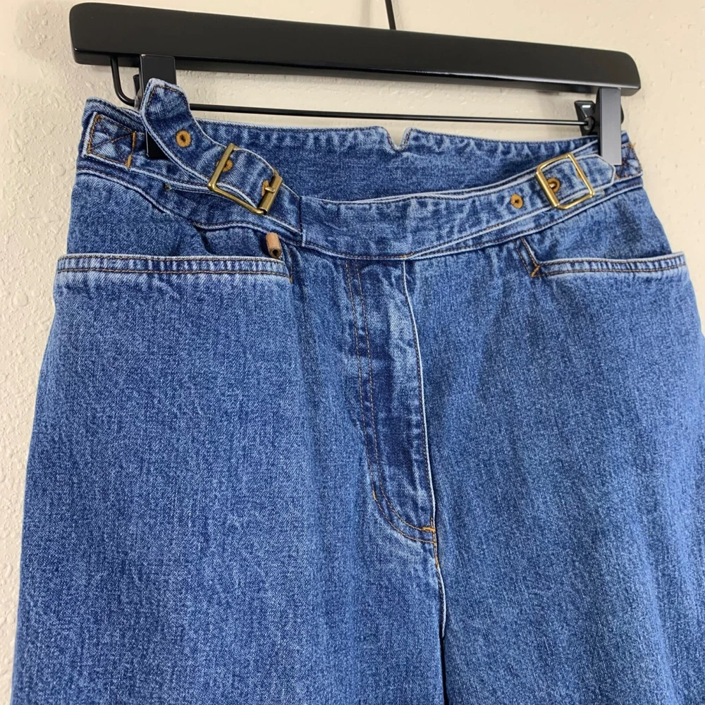 Vintage Lauren Jeans Co. Ralph Lauren High Waist Buckle Jeans - Size 4 Great preowned condition! Zip fly with buckle closure 4 pockets (2 in the front, 2 in the back) V notch in the waistband in the back Half-waist: 13" Inseam: 30” Length: 40" Rise: 10" Measurements are lying flat, and estimates only. 3P35 17-5206 1 lb 4 oz Tags: casual, retro, minimalist, everyday, capsule