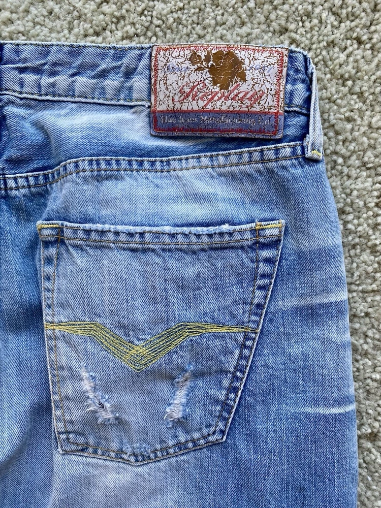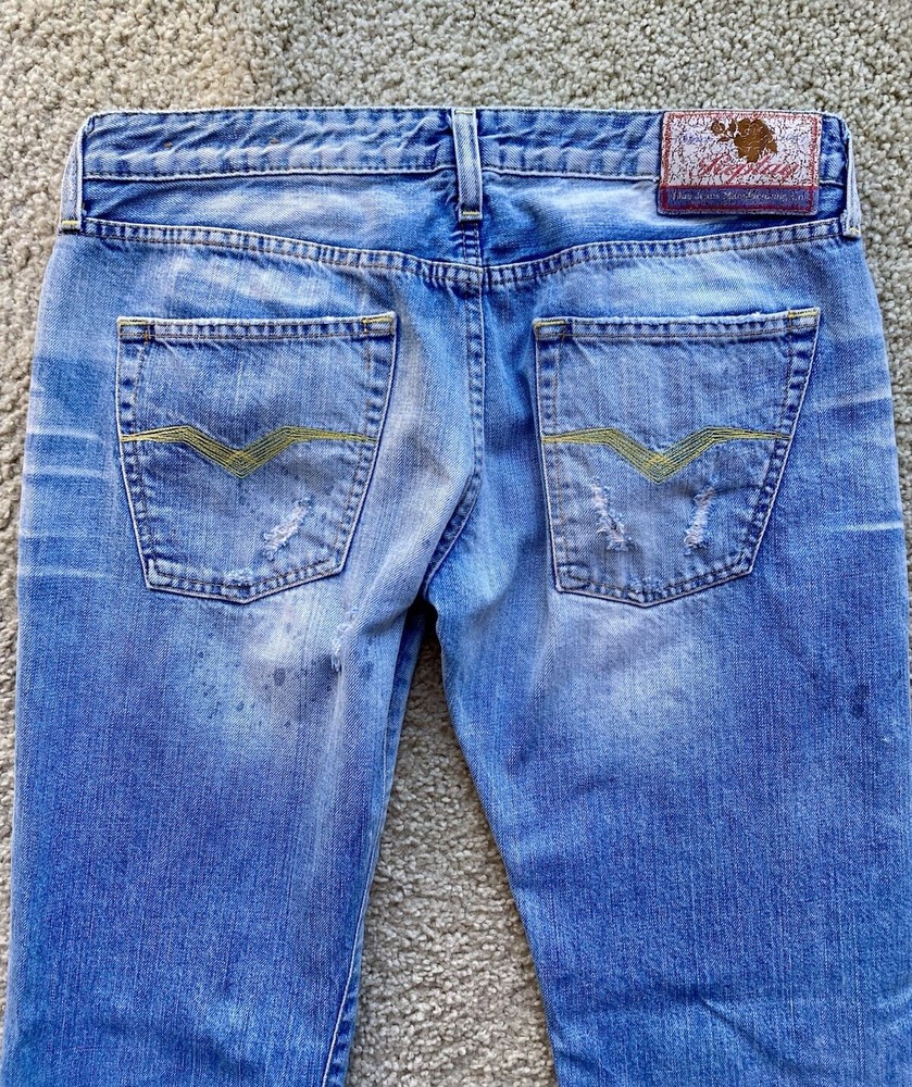 Replay Vintage Y2K Low Rise Distressed Studded Straight Leg Jeans Like new condition! ✨ Bought back in 2006, worn once, been hanging in my closet since! Retail: $170 Made in Italy These low-rise distressed studded jeans are peak Y2K, a pair of denim Britney Spears or Paris Hilton would love. 3-button fly closure. Intentional distressing and splattering details, along with silver grommets/studs on the left pocket. *Measurements taken while garment was laid flat Rise: 8 inches Length: 39-40 inches Waist: 17 inches Leg opening: 8 inches Inseam: 31 inches 90s, Y2K, vintage, 2000s, Britney Spears, distressed, studded, low-rise, low rise