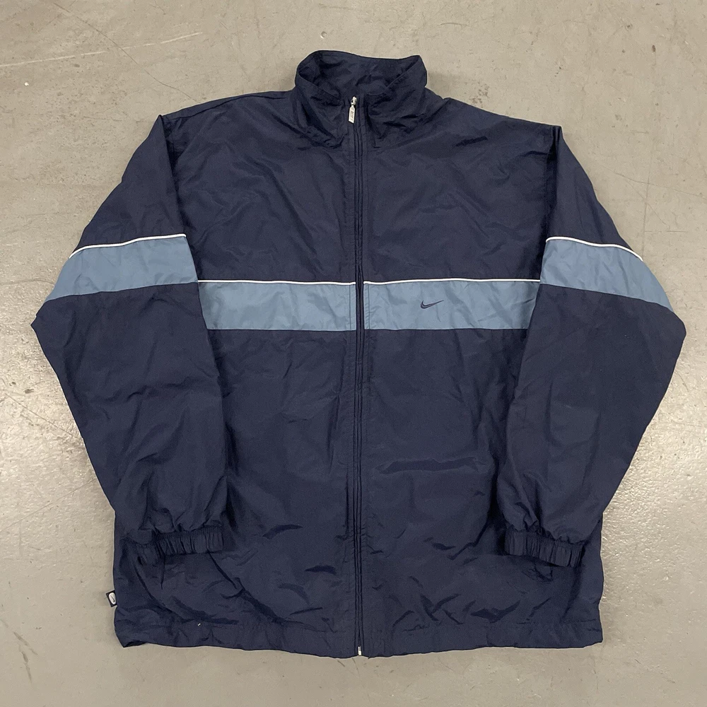 Country/Region of Manufacture: Malaysia Brand: Nike Department: Men Fit: Regular Number of Pieces: 2 Piece Sleeve Length: Long Sleeve Set Includes: Jacket Features: Pockets, Lightweight Type: Tracksuit Size: 2XL Vintage: Yes Occasion: Activewear Size Type: Regular Color: Blue Style: Track Jacket Closure: Zip