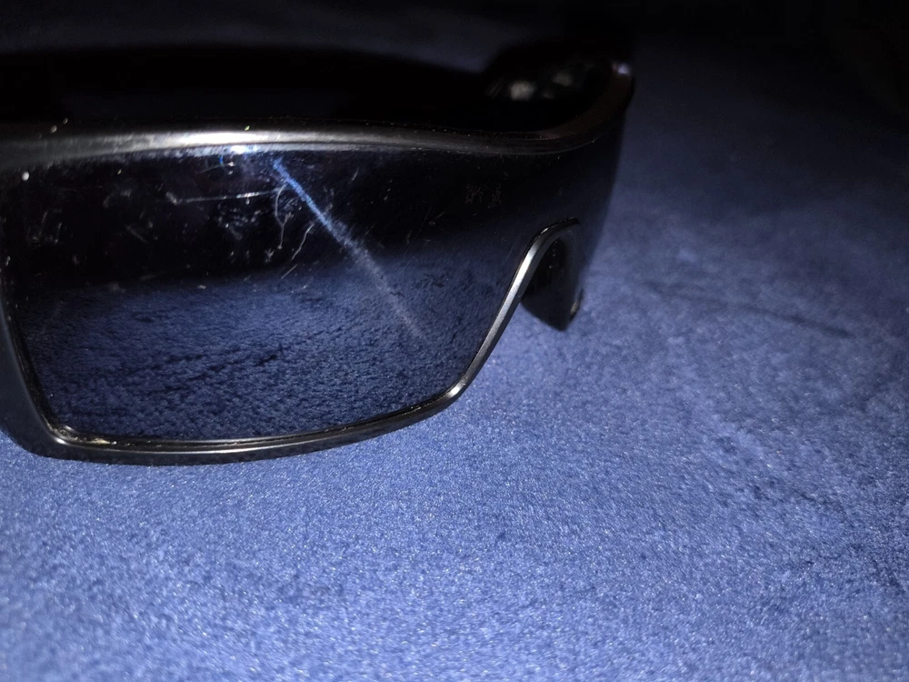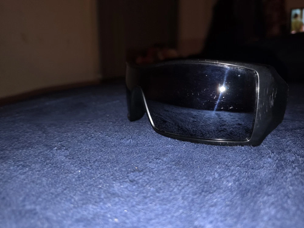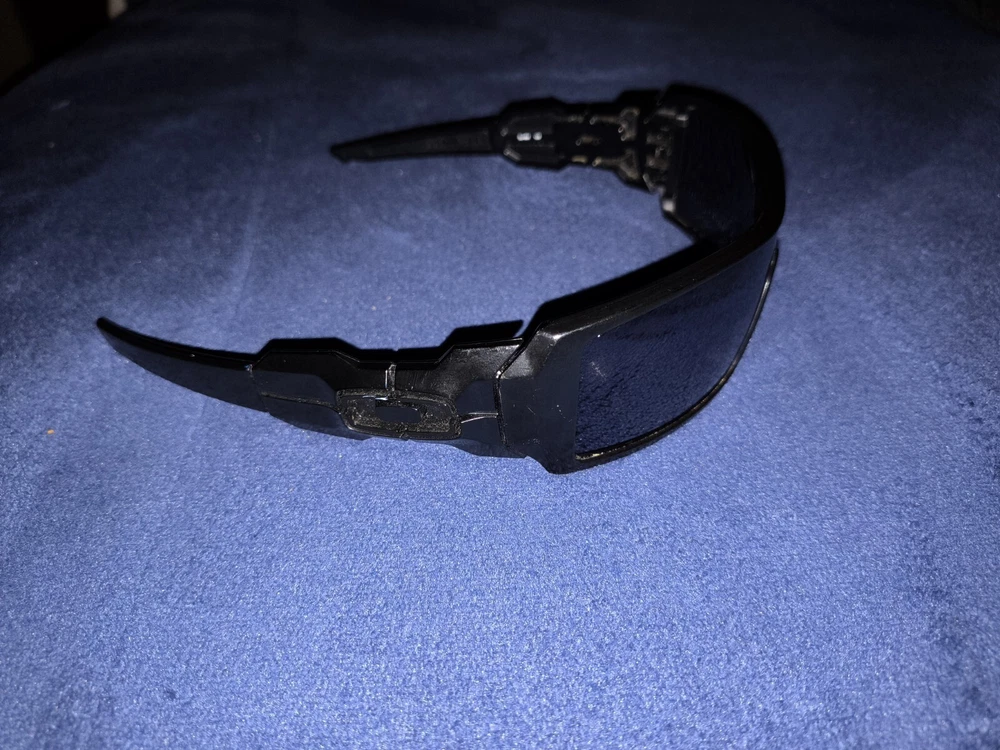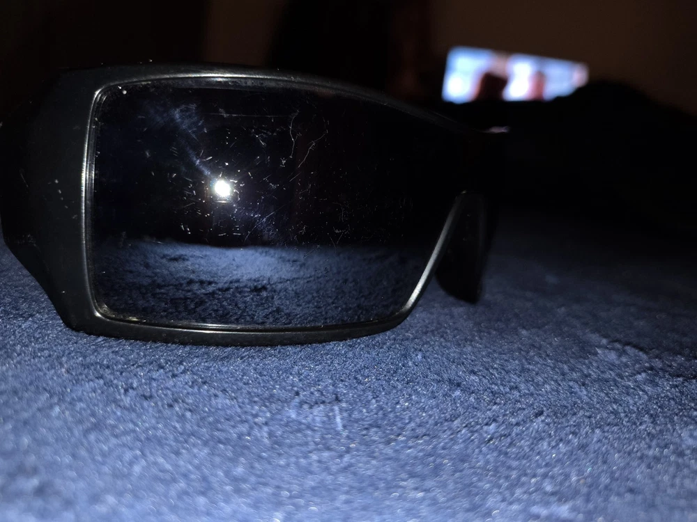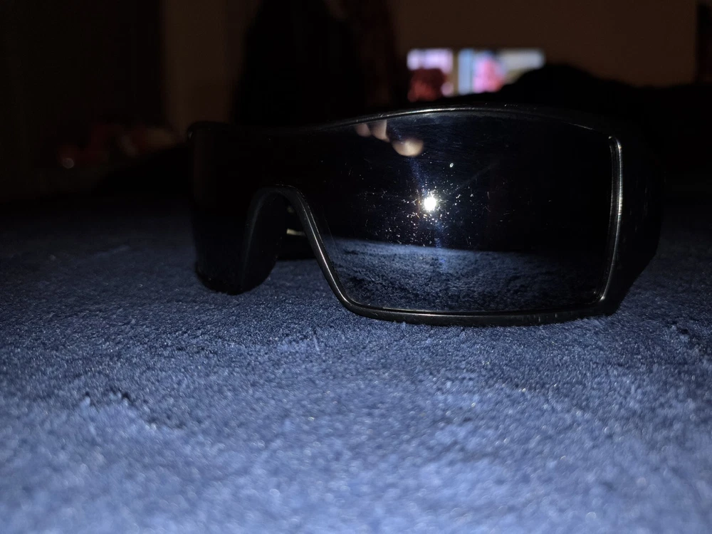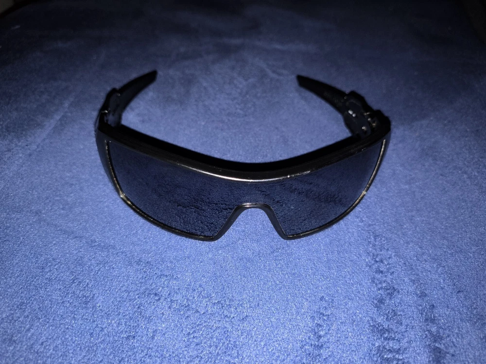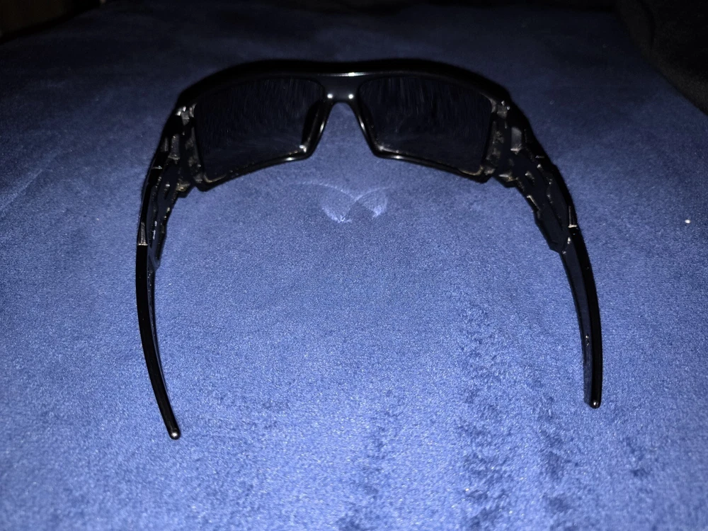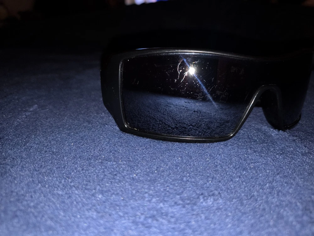Vintage Y2K Oakley Oil Rig Sunglasses feature black frames and lens. Lens do have scratches on them, can see them in pictures. Lens replacement recommend. But I have worn them often as is and don't notice it much. Perfect touch for that y2k fit. Match with an Affliction shirt ,baggy pants, and a beanie.