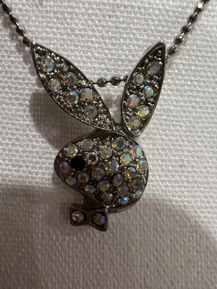 Main Stone: Crystal Main Stone Color: Multicolor Style: Pendant Occasion: Birthday, Graduation, Christmas, Valentine's Day Material: Rhinestone Main Stone Shape: Round Brand: Playboy Vintage: Yes Type: Necklace Color: Silver Closure: Lobster Necklace Length: 16 in Country of Origin: Unknown Main Stone Creation: Simulated Chain Type: Rolo Country/Region of Manufacture: Unknown Metal: Silver Plated