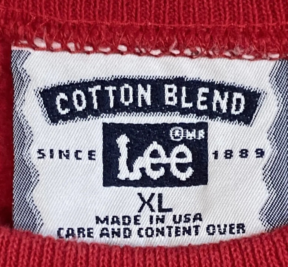This vintage Lee sweatshirt is a perfect addition to any retro wardrobe. The red color and embroidered accents make it stand out, while the fleece fabric ensures comfort during the fall, winter, and spring seasons. The pullover style with a crew neck and long sleeves is perfect for both gym and training sessions and outdoor activities like walking, riding, hunting, and hiking. This Y2K sweatshirt, made of a blend of polyester and cotton, is machine washable for easy care. It comes in size XL and a regular fit, making it suitable for men of all sizes. The solid pattern and punk, grunge, and retro theme add a unique touch to your look. Don't miss out on this one-of-a-kind Lee sweatshirt!