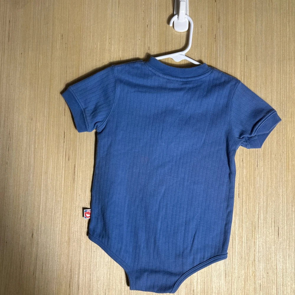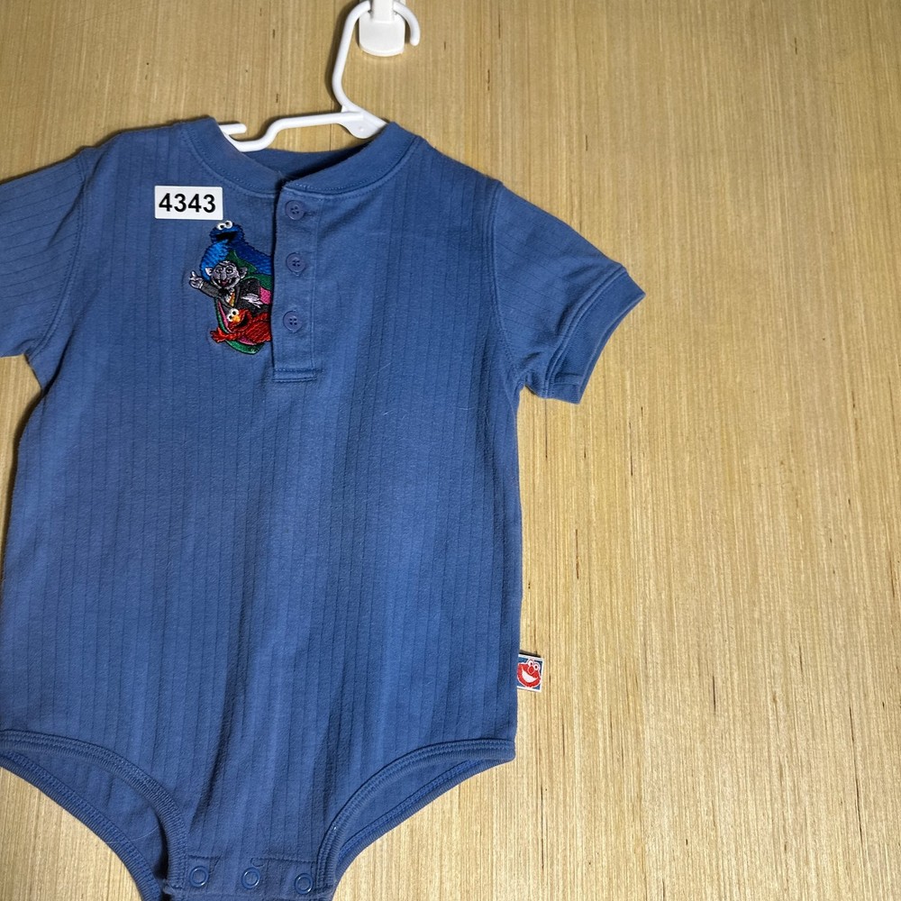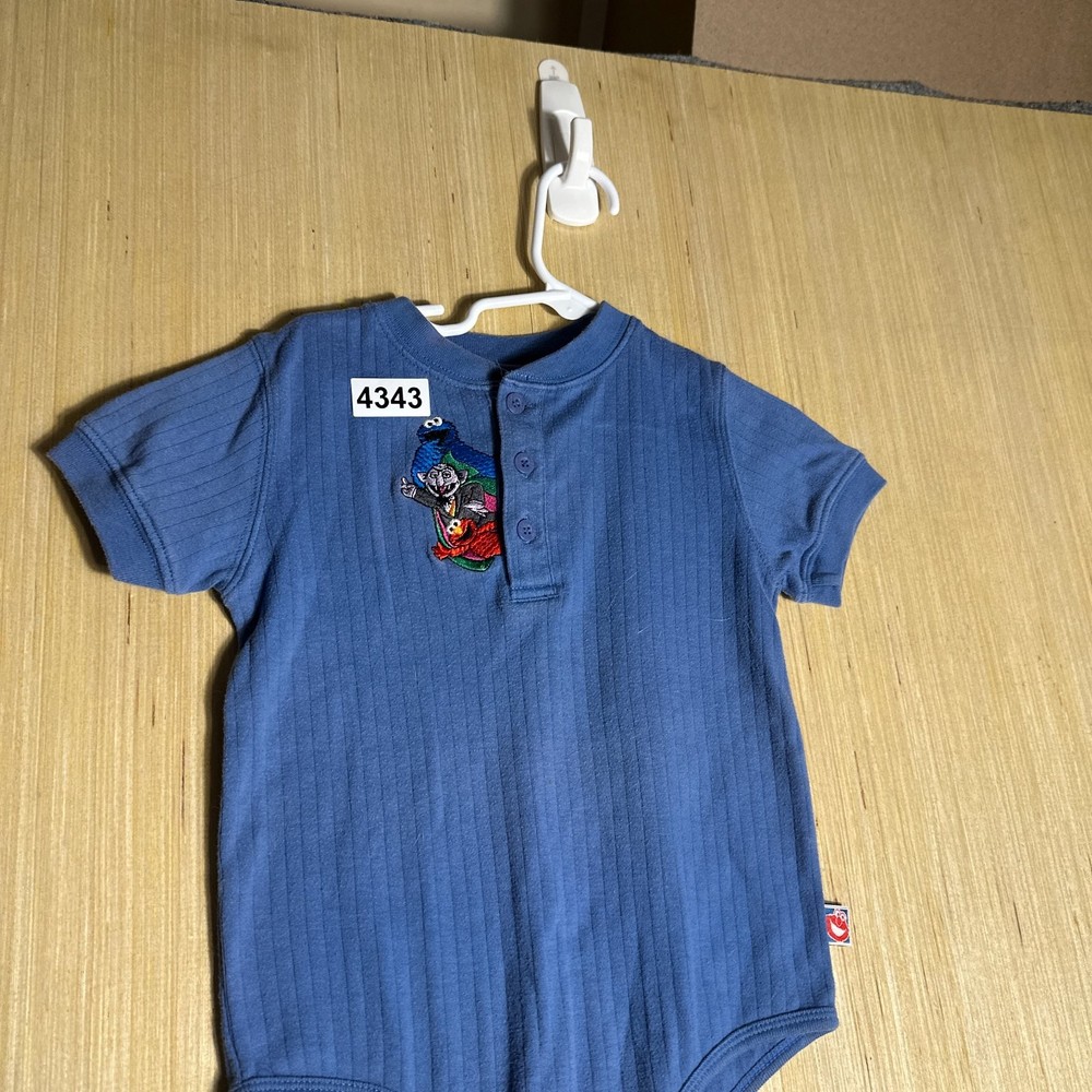 This Vintage Y2K Sesame Street Snap Bodysuit in blue featuring Count Dracula design is perfect for kids aged 24 months. Made from 100% cotton, this short sleeve bodysuit with snaps for easy dressing is great for casual occasions. The retro 90s style and TV character theme make it a fun and unique addition to your little one's wardrobe. Easy to care for with machine washable instructions, this onesie is a nostalgic and stylish choice for your child.