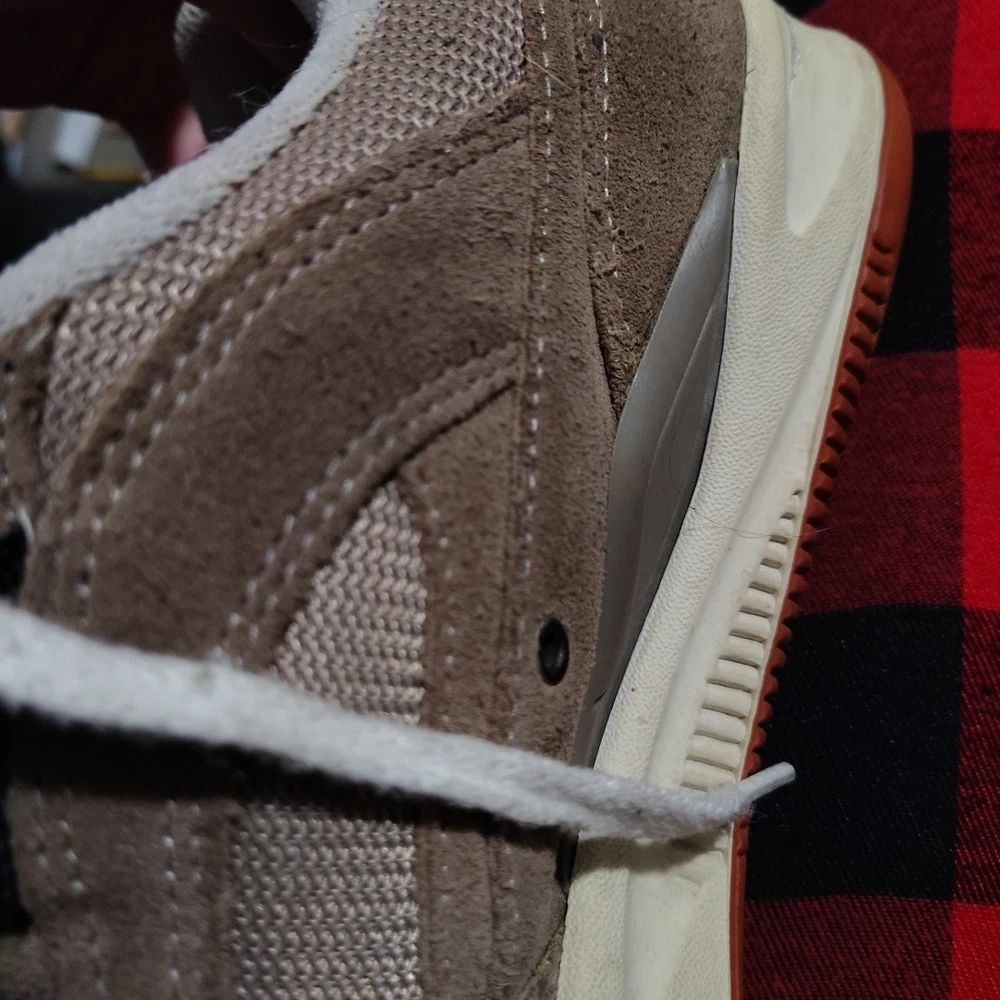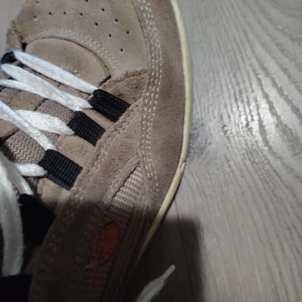 Some separation visible in the photos but it is stitched so the sole will not come off very nice for the age. If you have any questions or would like more photos feel free to ask