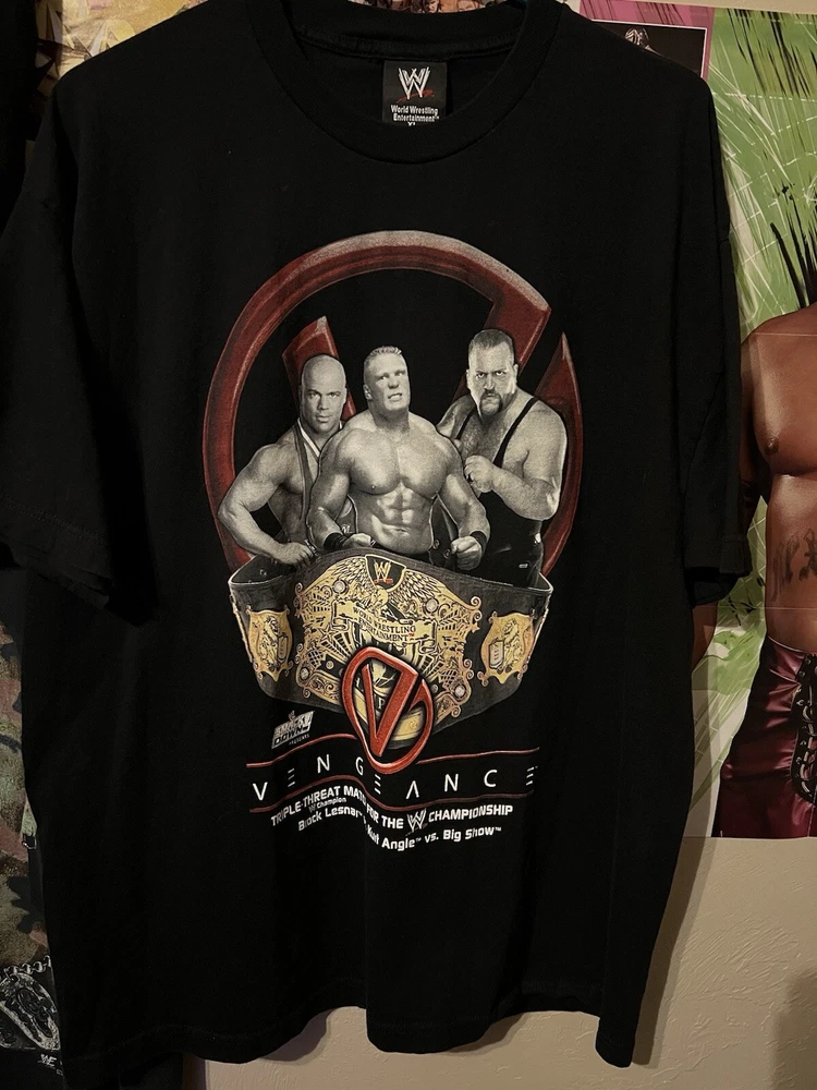 Vintage Y2K WWE Vengeance Ppv Promo T Shirt Kurt Angle Brock Lesnar Big Show XL