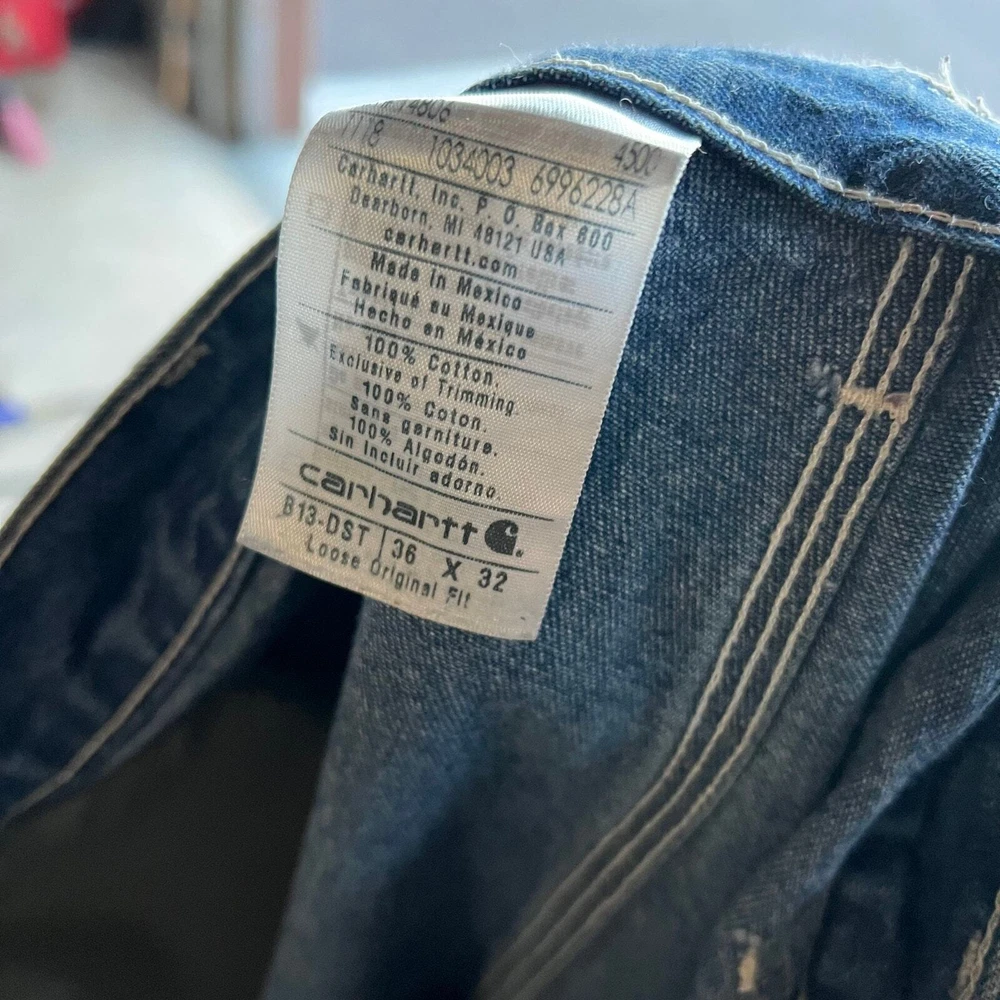 Vintage Y2K blue Carhartt denim jeans work wear carpenter pants. Great pair. Measure 36x32.5 and a 9.5 leg opening. Please check measurements before purchasing. I do my best to show any flaws in pictures. Quick shipping! Bundles encouraged! @ants_haul on Instagram. 445!!!