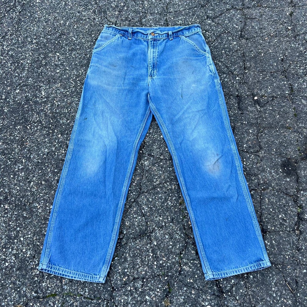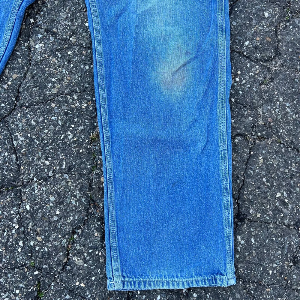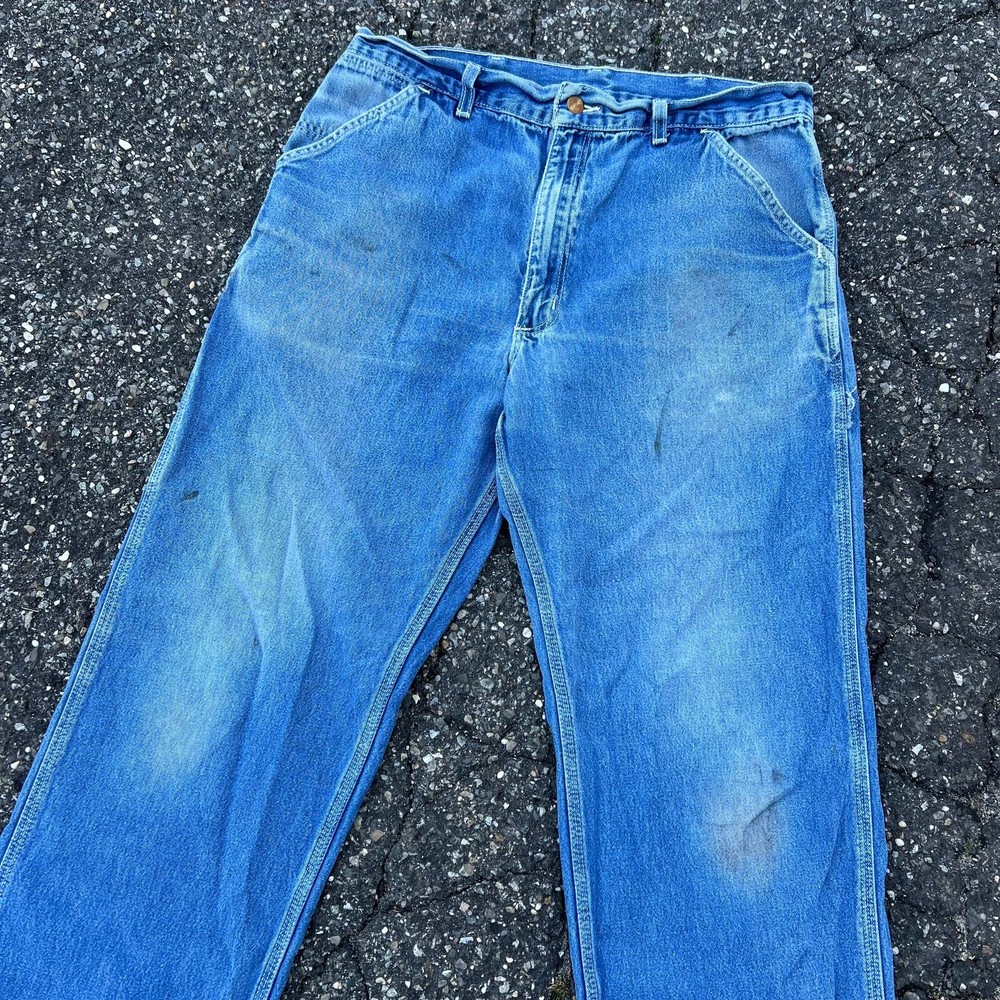 Vintage Y2K blue Carhartt faded denim jeans work wear carpenter pants. Great wash on these. Measure 34x30.5 and a 9 leg opening. Please check measurements before purchasing. I do my best to show any flaws in pictures. Quick shipping! Bundles encouraged! @ants_haul on Instagram. 175!!!