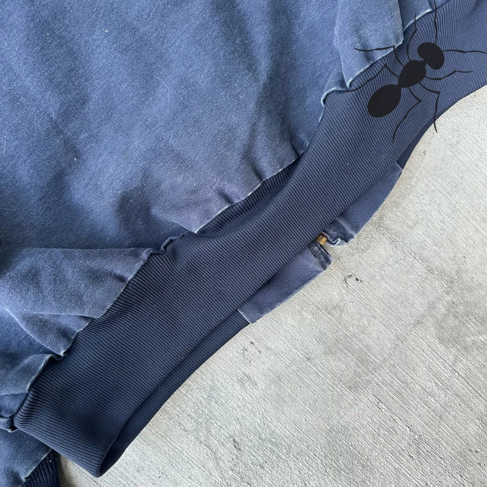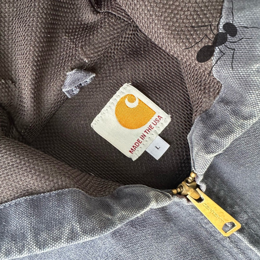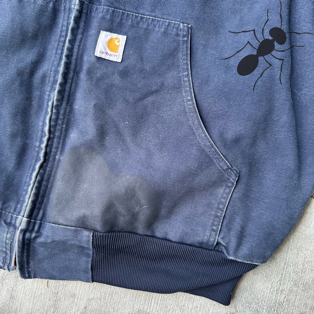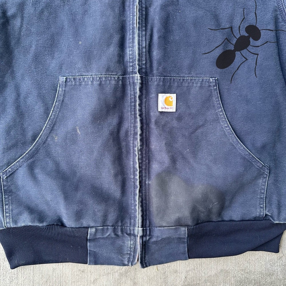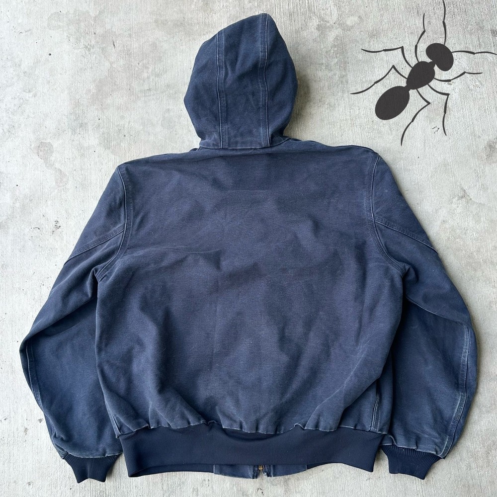 Vintage Y2K blue Carhartt hooded work wear jacket. Good fade. Stain on right pocket with smaller markings throughout. Measures 26.5x28. Please check measurements before purchasing. I do my best to show any flaws in pictures. Quick shipping! Bundles encouraged! @ants_haul on Instagram. 1A!!!