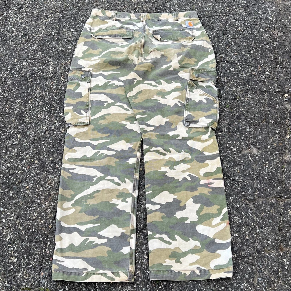 Vintage Y2K camo Carhartt work wear cargo pants. Great pair. Measures 33x29 and a 9.5 leg opening. Please check measurements before purchasing. I do my best to show any flaws in pictures. Quick shipping! Bundles encouraged! @ants_haul on Instagram.