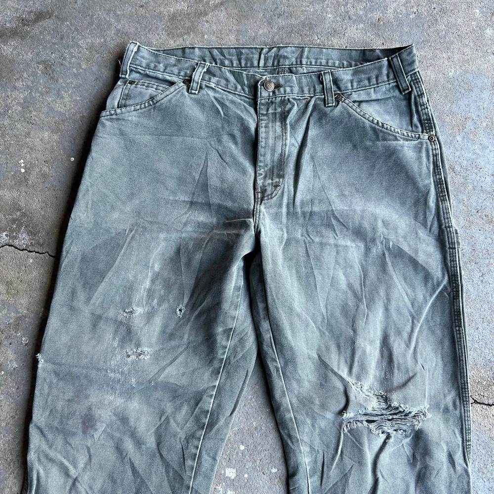 Vintage Y2K green dickies work wear carpenter pants. Really good pair! Measure 34x31.5 and a 9 leg opening. Please check measurements before purchasing. I do my best to show any flaws in pictures. Quick shipping! Bundles encouraged! @ants_haul on Instagram.