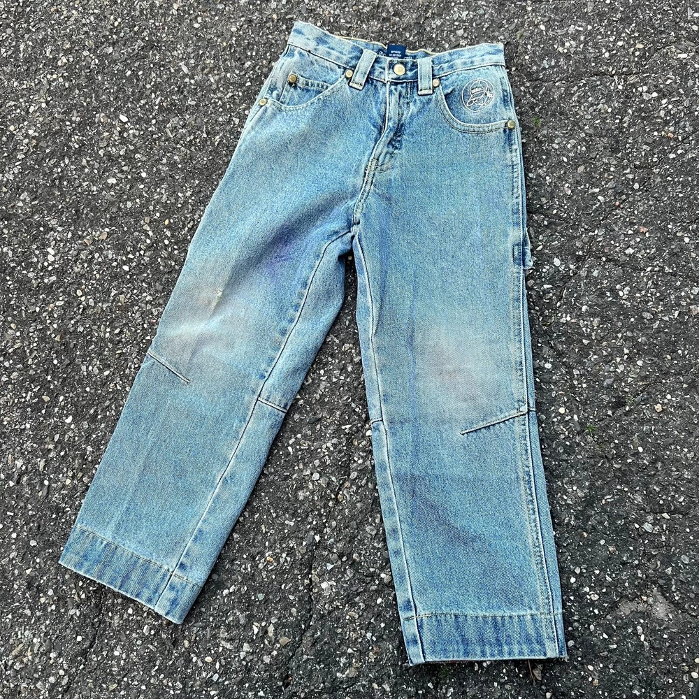 Vintage Y2K pj miller blue denim kids jeans pants. Kids sizing. Measure 21x20.5 and a 8.5 leg opening. For a kid or a very petite person. Please check measurements before purchasing. I do my best to show any flaws in pictures. Quick shipping! Bundles encouraged! @ants_haul on Instagram.