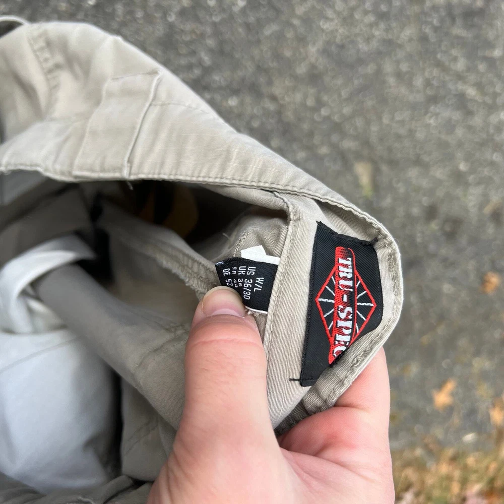 Vintage Y2K true spec beige cargo work wear pants. Good pair. Measure 35x29.5 and a 9.25 leg opening. Please check measurements before purchasing. I do my best to show any flaws in pictures. Quick shipping! Bundles encouraged! @ants_haul on Instagram.