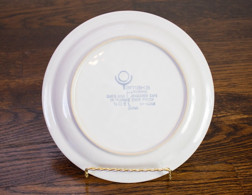 Material: Stoneware Theme: Christmas Production Technique: Pottery Brand: Yamaka Color: Multicolor Antique: No Origin: Japan Country/Region of Manufacture: Japan Shape: Round Set Includes: Dessert Plate, Salad Plate Occasion: Christmas Vintage: Yes Backstamp: Printed Time Period Manufactured: 1970-1979 Type: Salad Plate Pattern: Christmas Tree Handmade: No Product Line: Noel Production Style: Art Pottery MPN: Does Not Apply