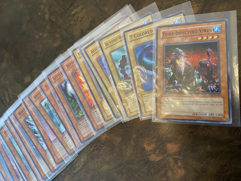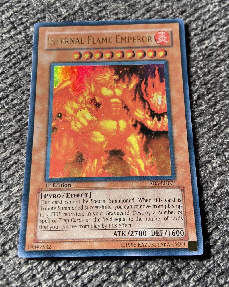 Lot of vintage Yu-Gi-Oh! Cards 107 total cards Includes 2 1st edition ultra rare cards Ocean Dragon Lord - Neo Daedalus Infernal Flame Emperor 72 1st edition cards 33 common cards Cards are in very good to near mint condition with the exception of only a few well played commons. I thought about not including them in the listing but I didn’t want to just throw them away.. Thanks for looking