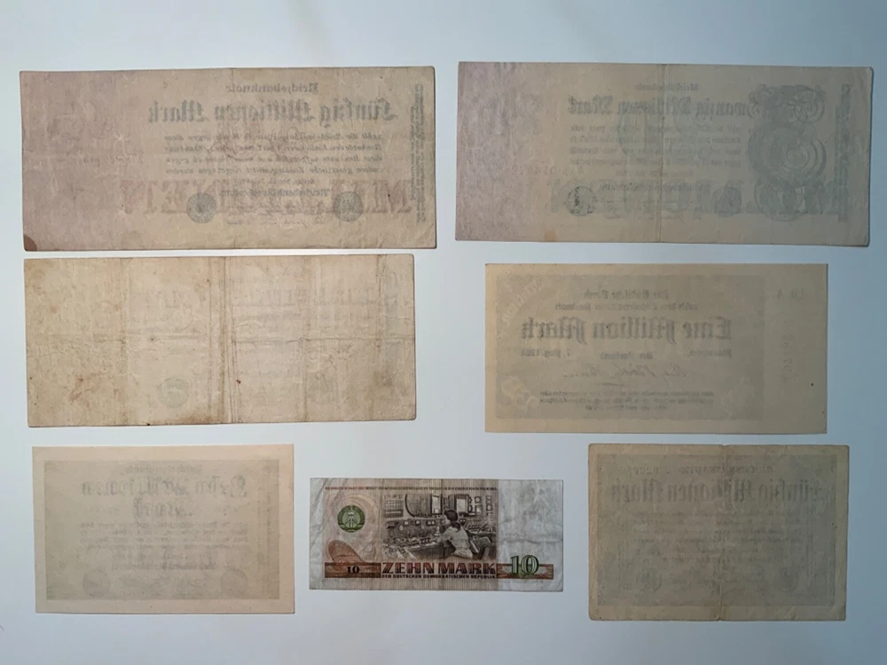 Vintage Bank Note Lot from Germany. Please reference picture and evaluate/grade by your self. If you have any questions ask before biding IMPORTANT: We strive to ensure the description of each item is as accurate as possible. But we are humans, and we make mistakes. It is the responsibility of the buyer to ensure the item being purchased is to their satisfaction. If an item is purchased and then a mistake is identified on the description of the item, the buyer has multiple options. 1) If the item has not been shipped, the buyer can cancel the order for a full refund. 2) If the item has already shipped, the buyer can return the item (free to the buyer) and a full refund will be issued after the item is received and inspected. 3) The buyer can decide to keep the item, no further action will be required in this case.