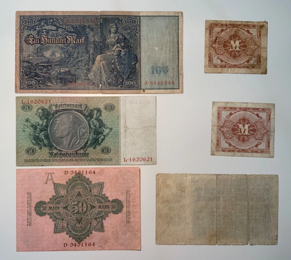 Vintage Bank Note Lot from Germany. Please reference picture and evaluate/grade by your self. If you have any questions ask before biding IMPORTANT: We strive to ensure the description of each item is as accurate as possible. But we are humans, and we make mistakes. It is the responsibility of the buyer to ensure the item being purchased is to their satisfaction. If an item is purchased and then a mistake is identified on the description of the item, the buyer has multiple options. 1) If the item has not been shipped, the buyer can cancel the order for a full refund. 2) If the item has already shipped, the buyer can return the item (free to the buyer) and a full refund will be issued after the item is received and inspected. 3) The buyer can decide to keep the item, no further action will be required in this case.