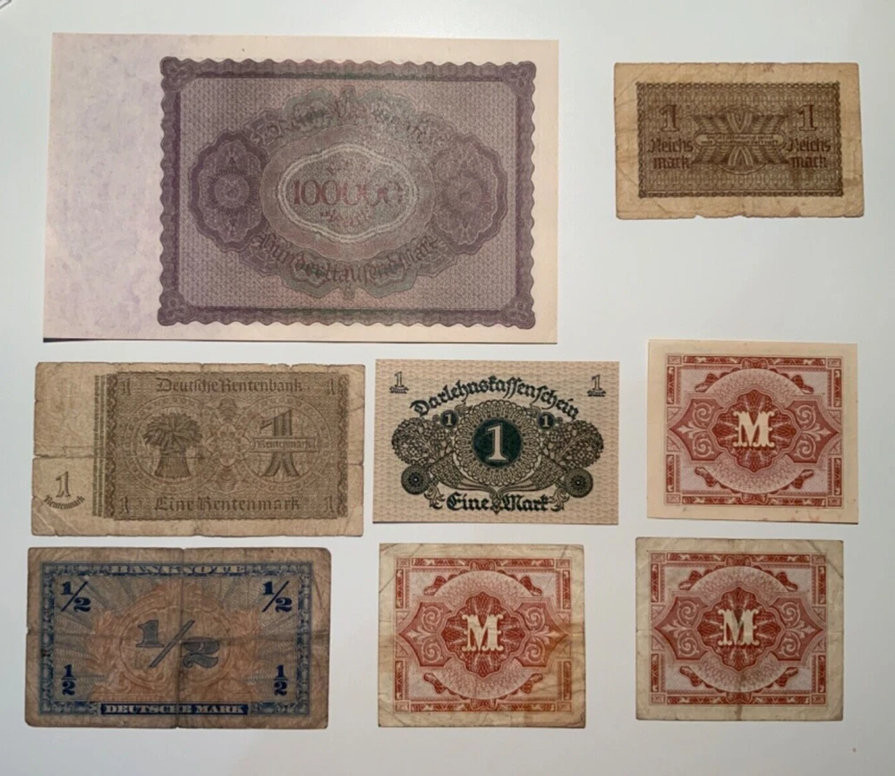 Vintage Bank Note Lot from Germany. Please reference picture and evaluate/grade by your self. If you have any questions ask before biding IMPORTANT: We strive to ensure the description of each item is as accurate as possible. But we are humans, and we make mistakes. It is the responsibility of the buyer to ensure the item being purchased is to their satisfaction. If an item is purchased and then a mistake is identified on the description of the item, the buyer has multiple options. 1) If the item has not been shipped, the buyer can cancel the order for a full refund. 2) If the item has already shipped, the buyer can return the item (free to the buyer) and a full refund will be issued after the item is received and inspected. 3) The buyer can decide to keep the item, no further action will be required in this case.