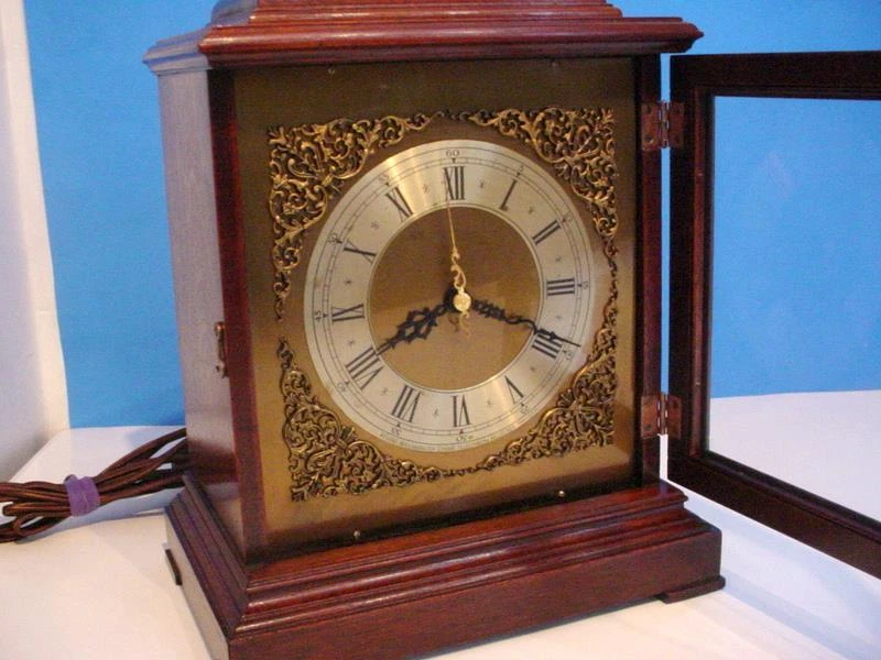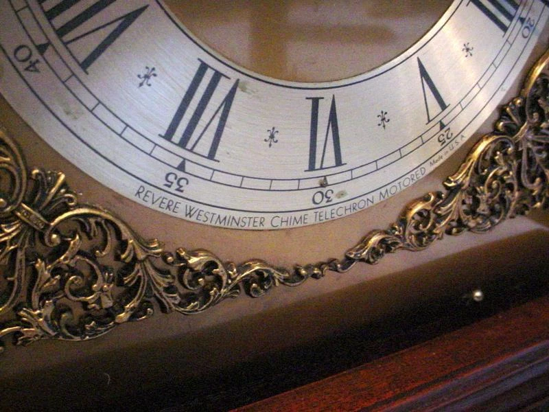 Watchentime Restoring vintage time to look new again. eBay Since 1999 Rare Vintage circa 1942 REVERE R-443 Telechron Motored Westminster Chime Solid Mahogany English type Mantel Clock Up for your consideration is a rare low production 1942 REVERE Serial # 375611 Telechron motored with Westminster Chimes. Substantial in size and possesses deep toned Westchester Chimes. The dial is antique brass with satin silver finish numeral circle. Corner ornaments of antique brass and solid brass handle on top. Hand constructed of heavy solid mahogany with hinged door at front and also at back. This clock has been completely dissembled, rebuilt rotor, rewired and restored to its original condition. Dimension: High 13-1/2" x Wide 10-3/8" x Deep 7" I GUARANTEE its authenticity or your money back. Feel free to check my feedback and bid with confidence. If you have any questions, please ask before placing your bid. Good luck and have fun. .................SEE YOU AT THE AUCTION...................... PAYMENT DETAILS Payment is due at auction end. Payment Method eBay USA Shipping: Shipping 2-3 business days thru USPS insured. All Sales Final....................................... "WERE ALWAYS WATCHENTINE" Vintage c.1942 REVERE R-443 Solid Mahogany Westminster Chime Bracket Clock Vintage c.1942 REVERE R-443 Solid Mahogany Westminster Chime Bracket Clock Click images to enlarge Description Watchentime Restoring vintage time to look new again eBay Since 1999 Rare Vintage circa 1942 REVERE R-443 Telechron Motored Westminster Chime Solid Mahogany English type Mantel Clock Up for your consideration is a rare low production 1942 REVERE Serial # 375611 Telechron motored with Westminster Chimes. Substantial in size and possesses deep toned Westchester Chimes. The dial is antique brass with satin silver finish Roman numeral circle, corner ornaments of antique brass and solid brass handle on top. Hand constructed of heavy solid mahogany with hinged door at front and also at back. This clock has been completely dissembled, rebuilt rotor, rewired and restored to its original condition. Dimension: High 13-1/2" x Wide 10-3/8" x Deep 7" I GUARANTEE its authenticity or your money back. Feel free to check my feedback and bid with confidence. If you have any questions, please ask before placing your bid. Good luck and have fun. .................SEE YOU AT THE AUCTION...................... PAYMENT DETAILS Payment is due at auction end. Payment Method eBay USA Shipping: Shipping 2-3 business days thru USPS insured. All Sales Final....................................... "WERE ALWAYS WATCHENTINE" Images sell! Get Supersized Images & Free Image Hosting 300+ Listing Templates! Auctiva gets you noticed! The complete eBay Selling Solution. Track Page Views With Auctiva's Counter