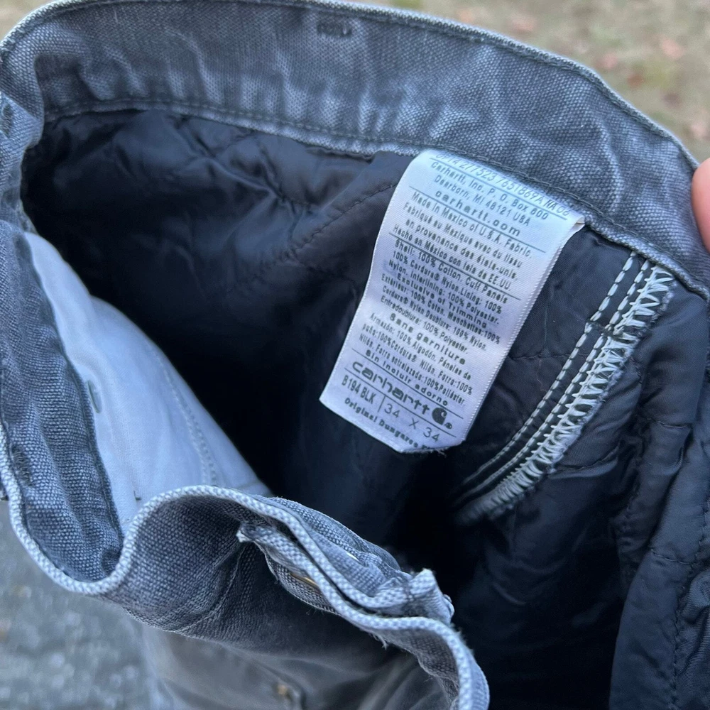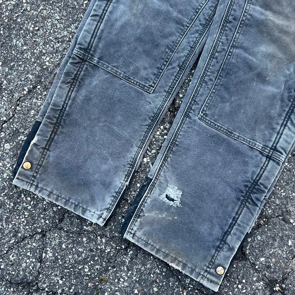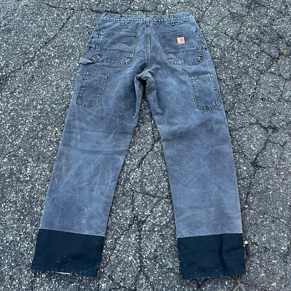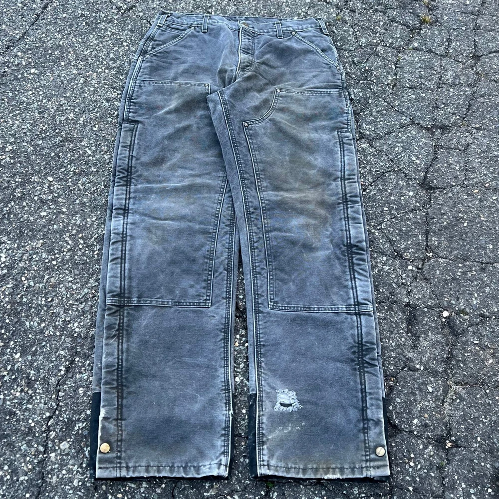 Vintage carhartt faded black lined double knee work wear carpenter pants. Great pair. Measure 33x33 and a 9.25 leg opening. Please check measurements before purchasing. I do my best to show any flaws in pictures. Quick shipping! Bundles encouraged! @ants_haul on Instagram. 349!!!