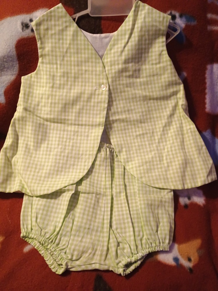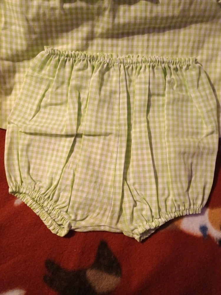 This vintage girls 2pc set in size 2 toddler is handmade with a button closure. The set includes a green dress shirt and matching underwear, perfect for a 60s themed outfit. This comfortable dress set is ideal for the summer and spring seasons, making it a stylish and cozy choice for your little one.