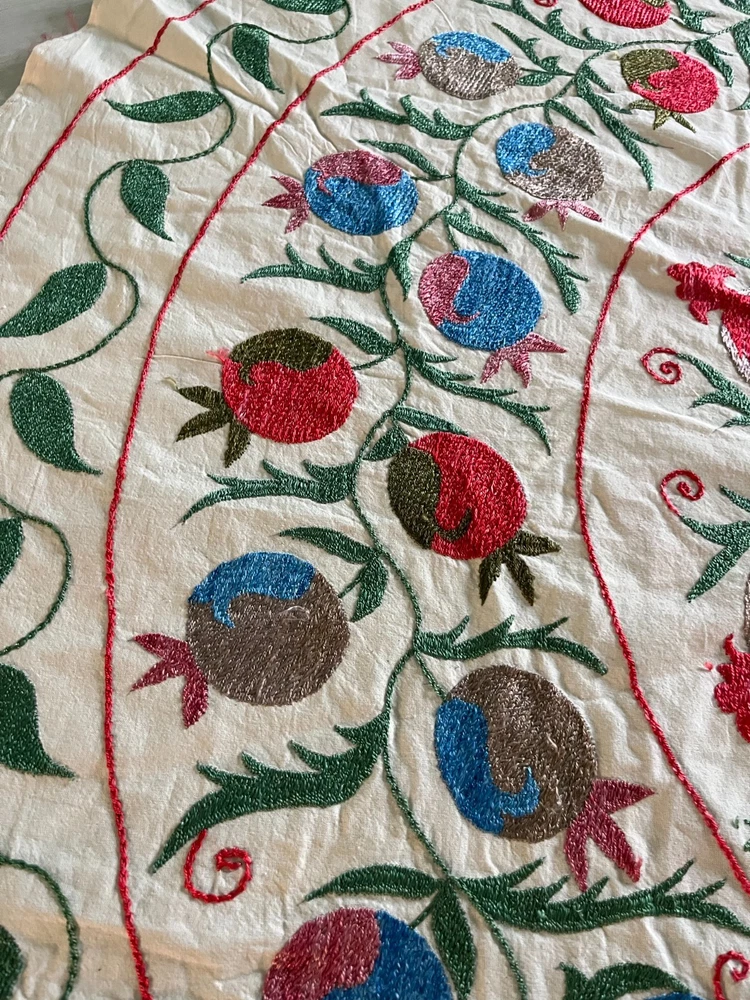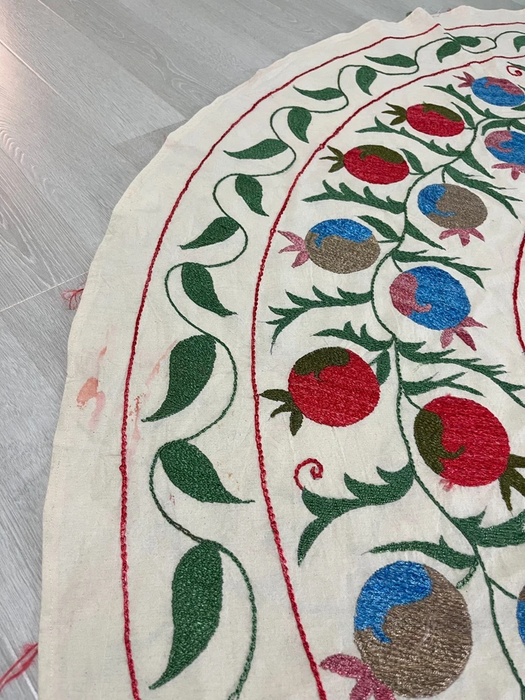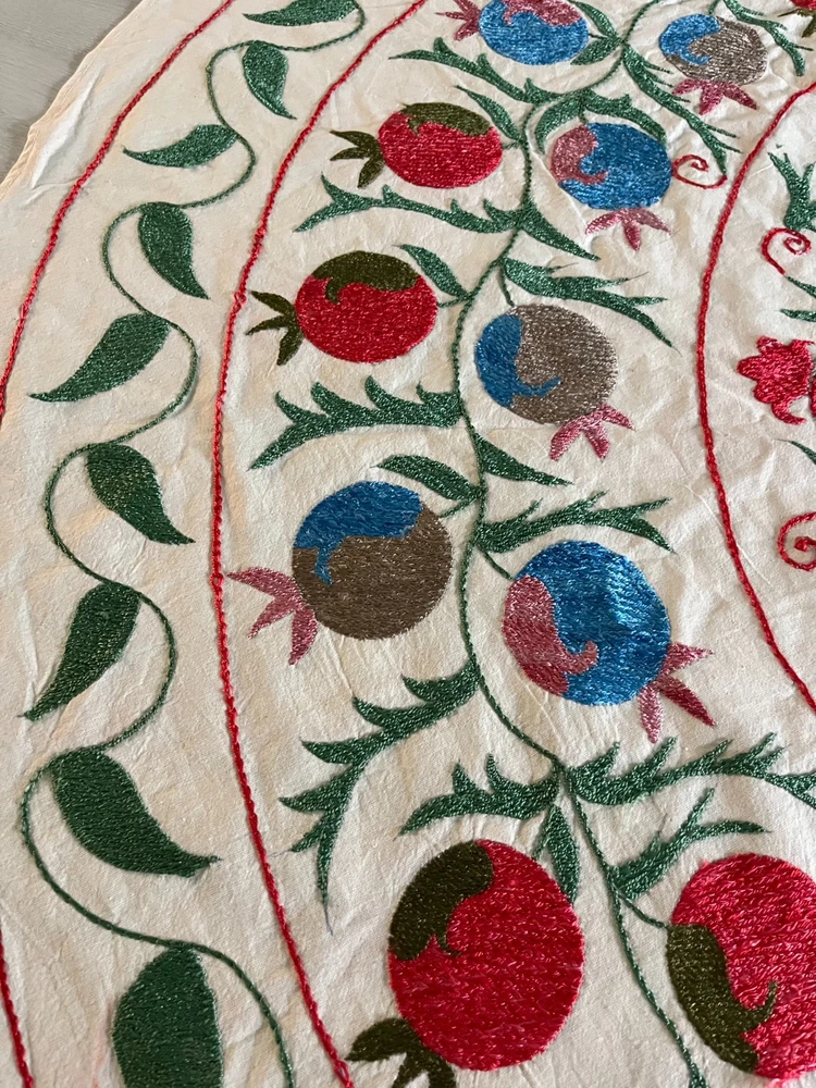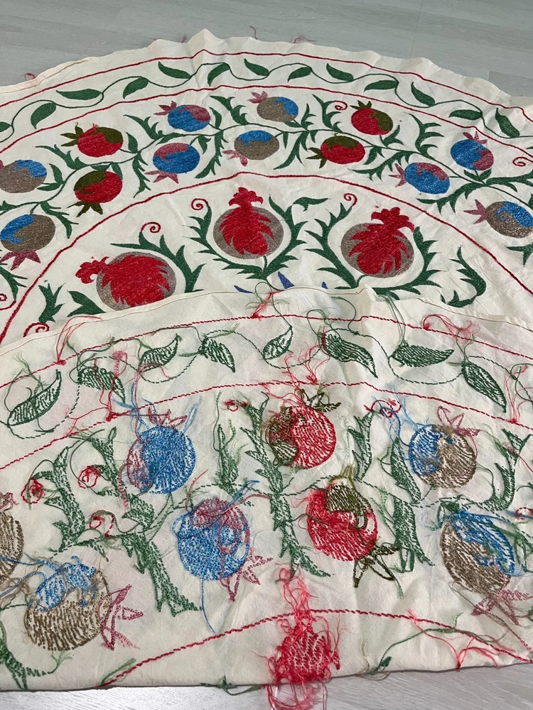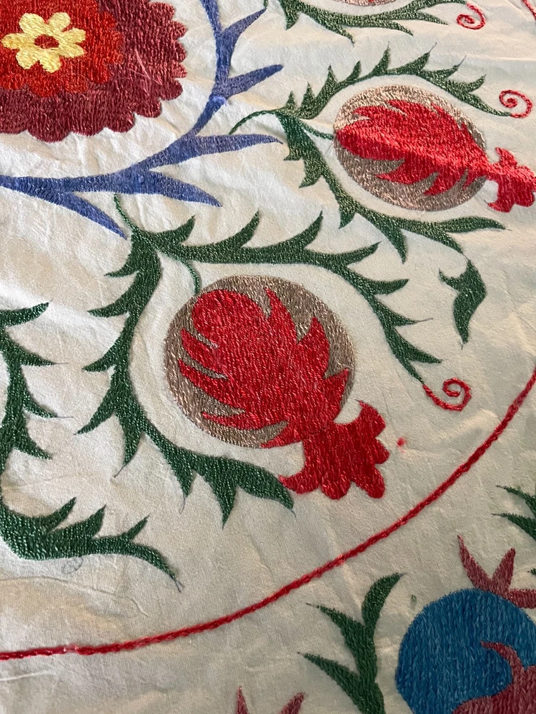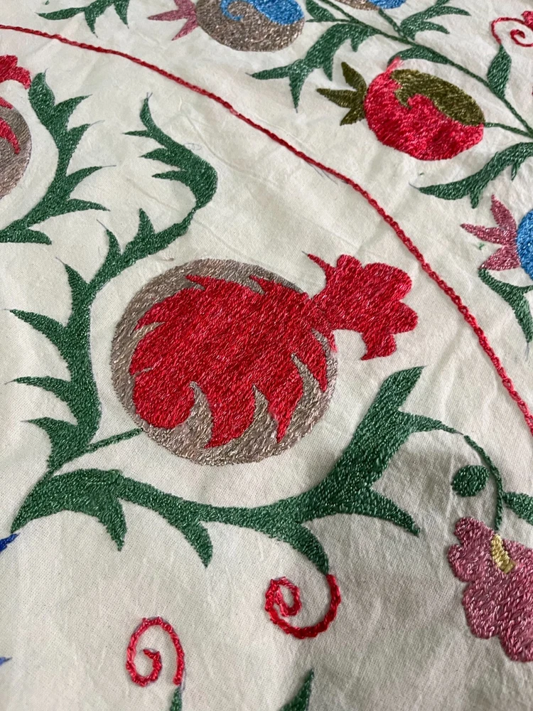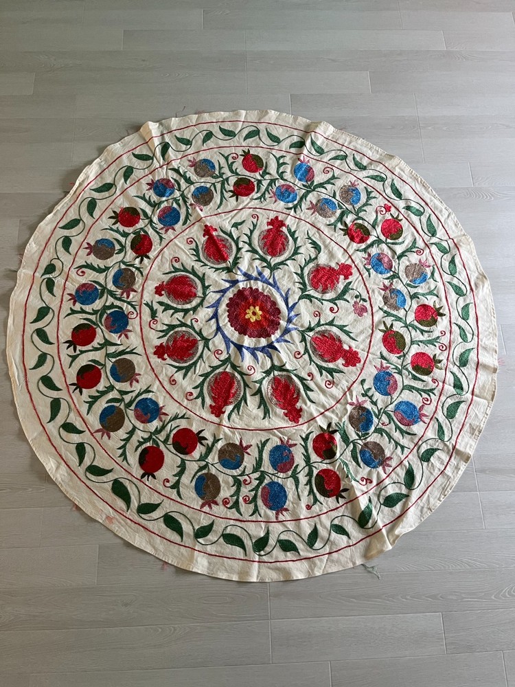 Created with Eselt - Mobile Optimized Templates for eBay Sellers Welcome to Samarkand Send us a message Created with Eselt - Mobile Optimized Templates for eBay Sellers Our Store Seller Profile Feedback About us Contact Created with Eselt - Mobile Optimized Templates for eBay Sellers Handmade Uzbek Suzani Wall Hanging Red Blue Floral Embroidery Art Boho Decor Handmade Uzbek Suzani Wall Hanging – Red Blue Floral Embroidery Art | Boho Home Decor Hand Embroidered Uzbek Suzani – “Pomegranate Garden” by Siyab Bazar ROUND 4.92 ft (150 cm) Boho Coverlet | Wall Art | Tapestry | Textile Decor A suzani is a traditional Central Asian hand-embroidered panel, and creating one from scratch is a lengthy, completely manual process. Below is the classic technique, as our artisans prepare it. Preparing the base (fabric) Traditionally used materials: • cotton • linen • silk (in the old days, homespun cloth) What to do: • the fabric is washed and dried to allow it to shrink beforehand • ironed • sometimes several pieces are sewn together into one large piece (suzani are rarely made from a single piece) Applying the pattern This is one of the most important steps. Methods: • Draw the pattern by hand (chalk, charcoal, pencil) • Transfer from a stencil • In the old days, the pattern was often stored "in the mind" of the craftswoman The patterns are not random: • Sun — life, energy • Flowers — beauty, fertility • Branches — procreation Each region (Bukhara, Samarkand, Shakhrisabz, Tashkent) has its own style. Thread selection Traditionally: • Silk threads (the most valuable) • Cotton • Sometimes wool Colors are selected by hand; in the past, they were dyed with natural dyes: • Garnet • Indigo • Onion peel • Madder root Hand embroidery The longest stage. Basic techniques: • Basma - a thick satin stitch (the most popular) • Yurma - a chain stitch • Ilma - a filling stitch How to embroider: • The fabric is stretched over a frame • The embroidery process takes months, sometimes 6-12 months • Often several women work on a single suzani In the old days, suzani were prepared as part of a bride's dowry. Assembly and finishing After completing the embroidery: • check for symmetry • carefully secure the threads • hand wash • dry in the shade • smooth without applying too much pressure Sometimes add: • fringe • lining • decorative edging The finished suzani completely handmade unique pattern (no other like it exists) can be used as: • wall hanging • bedspread • wedding or family dowry 💡 Interesting fact A true suzani is never perfectly even – this is the hallmark of handcrafted work and the “living energy” of the piece. Immerse yourself in the timeless beauty of Samarkand craftsmanship with this hand-embroidered Uzbek Suzani, part of Siyab Bazar’s signature “Pomegranate Garden” collection — where every stitch blooms with life, color, and meaning. This exquisite Suzani showcases vibrant red pomegranate patterns framed by bold floral motifs — each symbolizing love, abundance, and prosperity. Hand-embroidered by skilled women artisans in Samarkand, it carries the warmth of their heritage and the rhythm of the legendary Siyab Bazaar, where tradition and artistry meet. Features: Place of origin: Samarkand, Uzbekistan Material 100% natural made of Suzani cotton and silk (ikat and adras) Size: 4.92 ft approx. (150 cm) Traditional Central Asian Suzani pomegranate motif designs in silk thread, embroidered by hand. Dry clean only! Do not bleach! 100% Hand-embroidered in Samarkand, Uzbekistan Silk and cotton threads on a natural cotton base Elegant red pomegranate & floral motifs – traditional symbols of fertility and joy Ideal as wall art, bed cover, or boho home accent Unique Siyab Bazar design – no replicas, each piece is one of a kind, no two are ever the same Soft, detailed, and filled with rich cultural energy Lightweight, soft, and richly textured ✨ A Piece with a Story: This Suzani tells a tale of sunlight and silk, of red pomegranates bursting with life and fortune. The intricate needlework embodies centuries of Central Asian tradition, while its bold palette brings warmth and elegance to any interior — from bohemian lofts to refined modern homes. Hang it as a tapestry, drape it as a coverlet, or display it as a textile artwork — wherever it rests, it will radiate the soul of Samarkand and the unmistakable spirit of Siyab Bazar. Approximate Size: 4.92 ft (150 cm) Material: Cotton base with silk/cotton embroidery Origin: Handcrafted in Samarkand, Uzbekistan Condition: New – handmade; natural variations emphasize its authenticity Siyab Bazar Heritage Collection: At Siyab Bazar, we celebrate the living art of Uzbekistan. Every Suzani we curate is not just decor — it’s a story woven by hand, a bridge between the past and the present. Let the red pomegranates of Samarkand bloom in your home — symbols of abundance, unity, and timeless beauty. 🕊 SiyabBazar Promise: At SiyabBazar, each Suzani is chosen for its spirit, artistry, and heritage. We partner directly with Uzbek craftswomen to preserve their ancestral embroidery traditions and share their beauty with the world. Bring home a piece of the Samarkand sky — a handmade treasure woven with peace, history, and heart. God bless and warm regards, - Siyab Bazar Team Thank you for viewing our listing! Created with Eselt - Mobile Optimized Templates for eBay Sellers Payment IMMEDIATE PAYMENT REQUIRED. We accept all major payment methods such as PaypPal, Payoneer, Google Pay, VISA, Mastercard, AmEx and Discovery. Shipping All items are shipped from Tashkent, Uzbekistan. EXPEDITED INTERNATIONAL SHIPPING via Courier (FedEx or DHL) Delivery time: 10 business days Products for which you requested PERSONALIZATION we need 5 additional days for production. Delivery times vary depending on local/ international postal services and weather conditions . Processing time: 