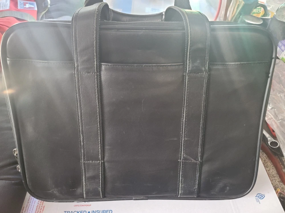 Here is a real leather Hartmann laptop tablet bag I purchased in 1998 for 500.00. Can you imagine how much it would cost today? I just don't have much use for it anymore. The one shoulder strap ring is ripped out from to much weight but the carry handle is still strong. Has 2 seperate compartments divided, plus a couple pockets on front. Please let me know if you have any questions or concerns. ship will have to be 25 due to size. ebay will likely add tax.