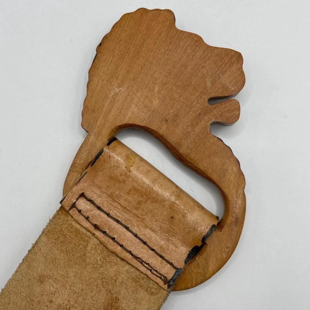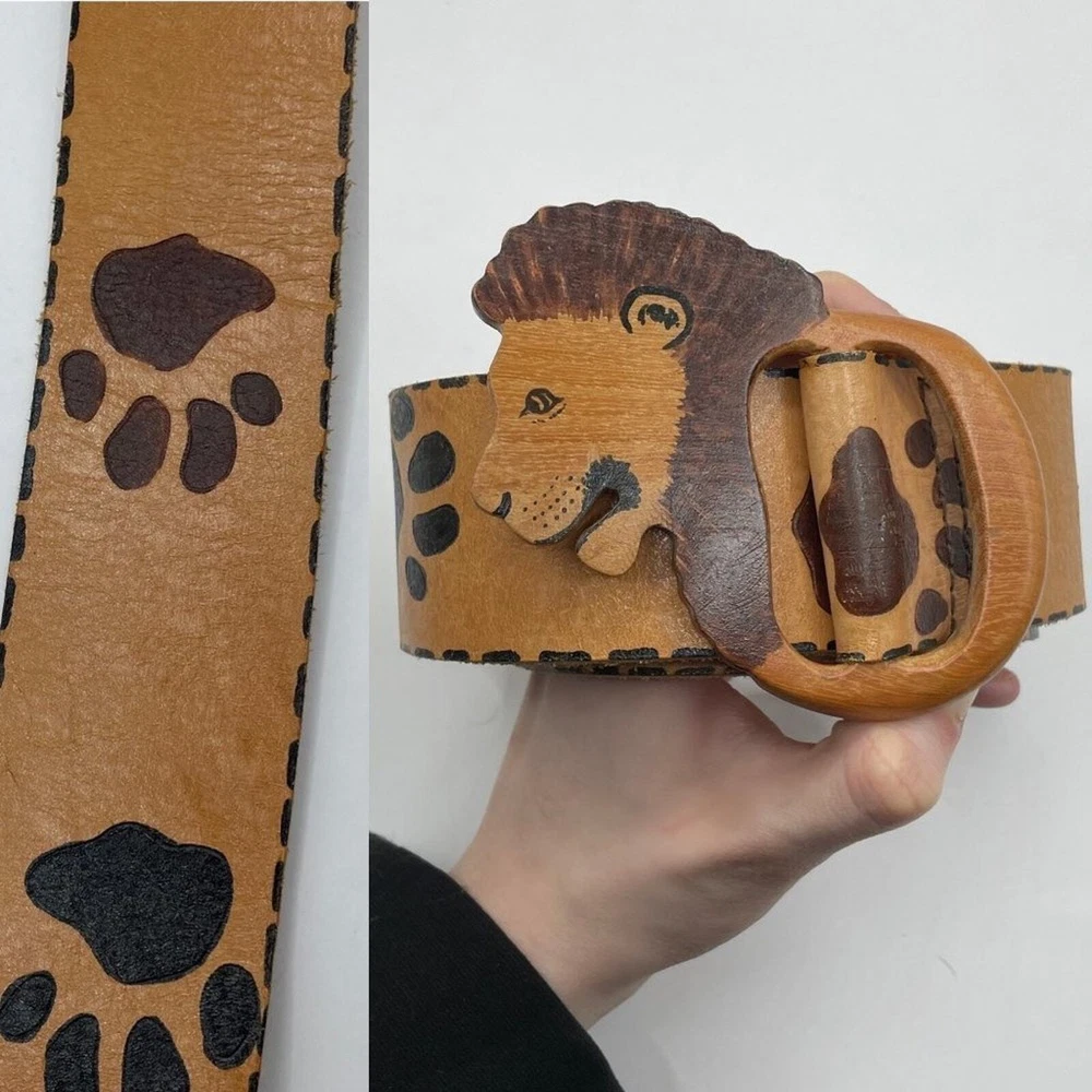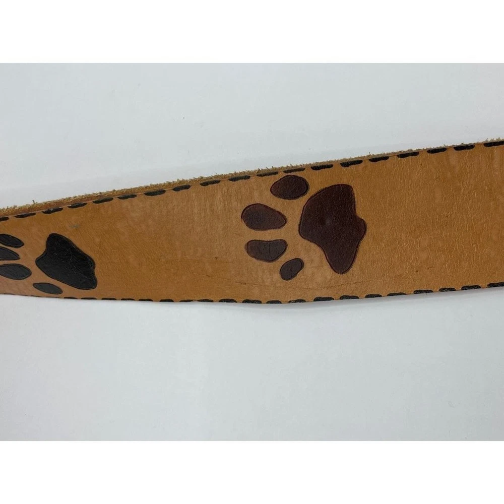 Vintage Leather Lion Head Animal Paw Print Belt Brown Full Adjustable Good Condition Shows Light Wear 45” 1/2”