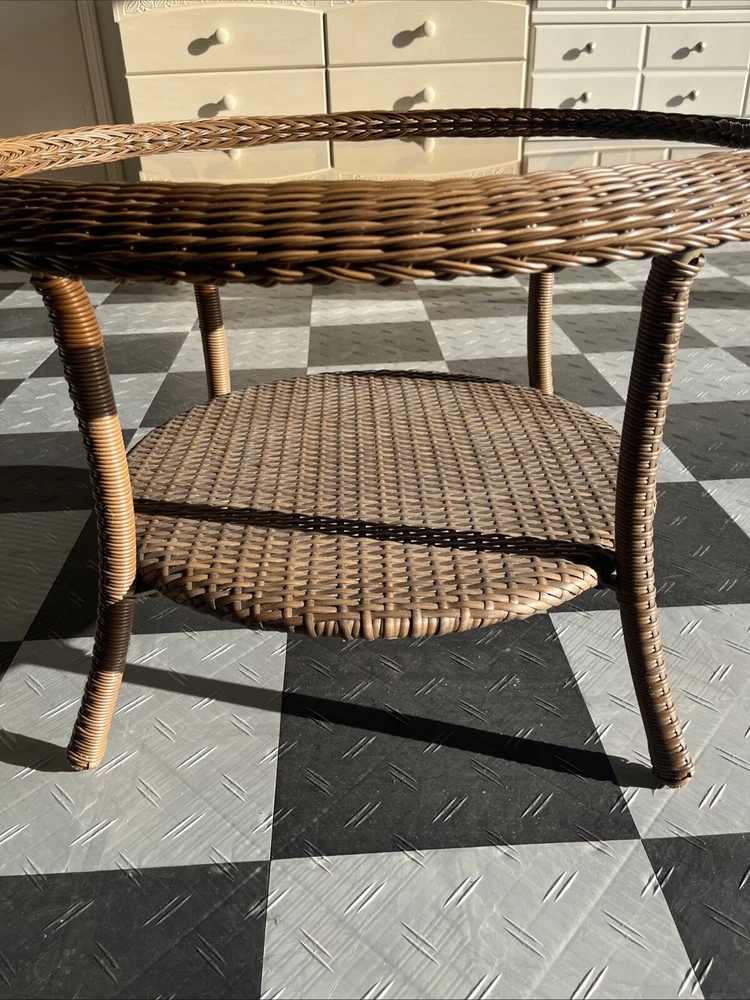 Vintage rattan double layered coffee table