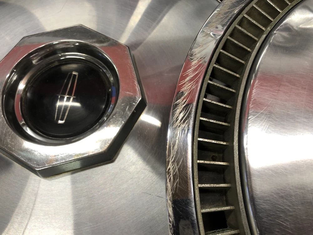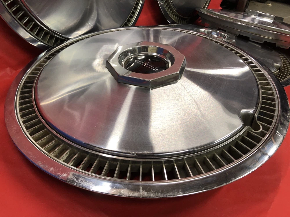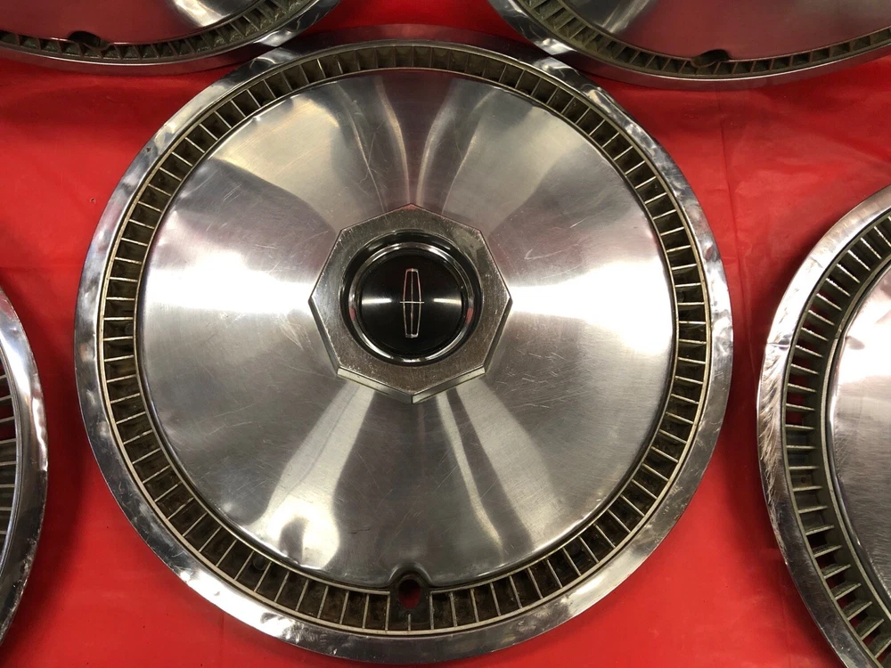 Vintage set of 5 1972–79 Lincoln 15" hubcaps Continental. Good to fair condition, dents, dings, scratches. Spare in middle is heavier than the others. Please see pictures. US SHIPPING ONLY INTERNATIONAL/GLOBAL SHIPPING AVAILABLE THROUGH EBAY NO RETURNS NO PO BOXES MUST HAVE PHYSICAL ADDRESS FOR DELIVERY Shipping only to lower 48 states due to postage rates, higher shipping charges to other states available. INTERNATIONAL ORDERS: if you are having issues completing the sale, please email us with the issue. eBay's Global Shipping Program is HAVING TROUBLE COMPLETING International orders for car parts & accessories. We can find a way around it, if you contact us!! **Please review all pictures carefully and ask any relevant questions before purchase. This is the item you will receive. PLEASE KEEP IN MIND THAT VINTAGE ITEMS ARE OLD and WILL SHOW THEIR AGE! **Due to eBay’s new policy, there will be a $20 RETURN FEE that they charge. This will be deducted from any refund. Please check out our stores: OLDHUBS OLDHUBS2 HAVE A BLESSED DAY!!