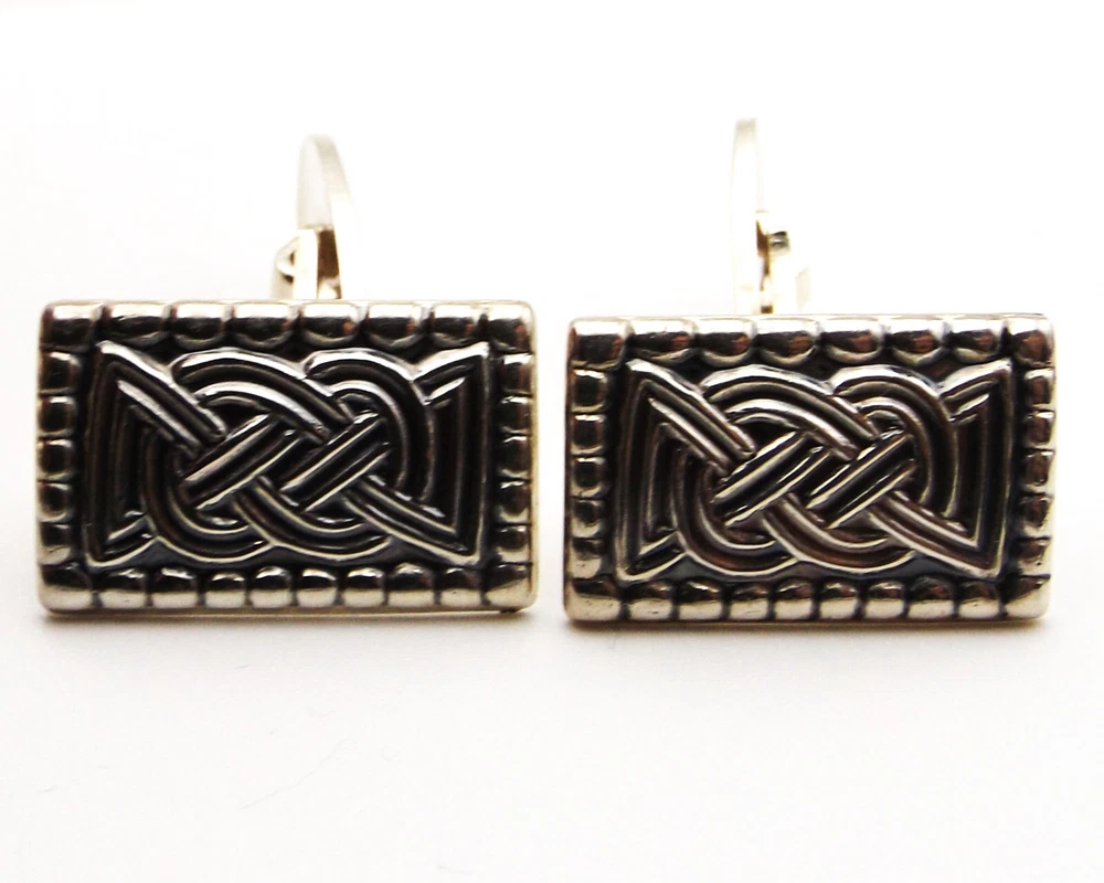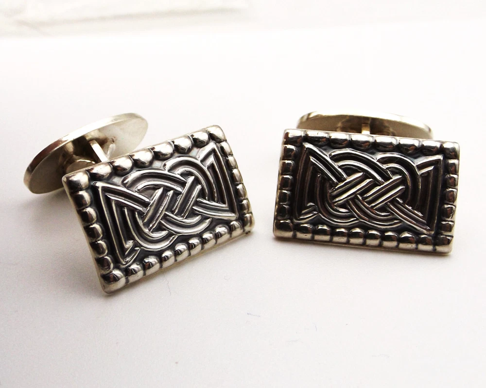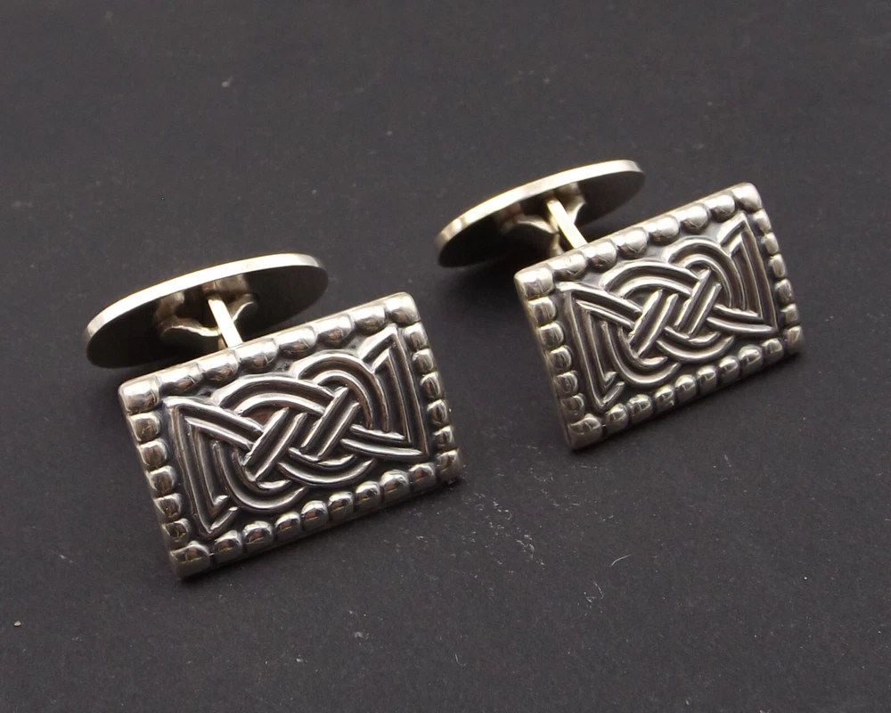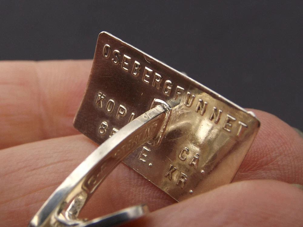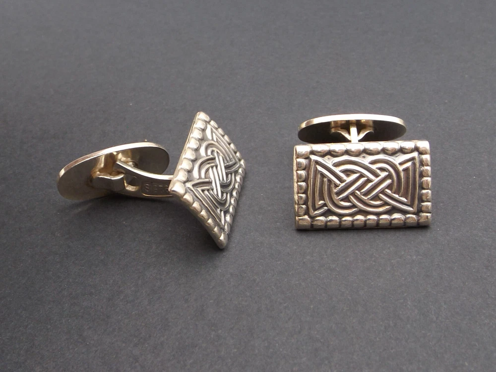 VINTAGE STERLING SILVER CUFFLINKS FROM THE SAGA SERIES BY DAVID ANDERSEN OF NORWAY OBLONG CUFFLINKS IN A CELTIC PATTERN THE MARKS ON THE BACK ARE AS FOLLOWS: OSEBERGFUNNET KOPI DA 850 KR The Andersen SAGA series, produced in the1960s, and the insiration was taken from prehistoric finds, now in the Olso Historical Museum. The Celtic Motif is based on an archeological fine at Obsberg in circa 850 AD as stated on the back marked sterling and 830 830 is a Norwegian standard of silver used in Norway until the 1970s so these cufflinks are an earlier example of this design EACH CUFFLINK MEASURES 21 X 13 MM 13/16" X 1/2" THE FRONT IS FIXED, THE BACK ELEMENT SWIVELS STUNNING DESIGN will be sent in a cufflink box please check my other items, only one postage charge Always happy to combine postage, we prefer to invoice when you are finished. We post every day Monday to Friday, and try to post same day or next day - happy to post Saturday if you ask! We mainly sell used items, so there may be wear, but we try to describe accurately - we might occasionally miss something or even completely mess things up - we are human - but never intentionally and will always try to resolve any issues. Contact me via ebay messages if you have any concerns with your purchase. Please be aware that International purchases may incur customs charges and may also be slightly delayed in customs. Any questions, just contact us via messages, we will get back to you as quickly as we can.