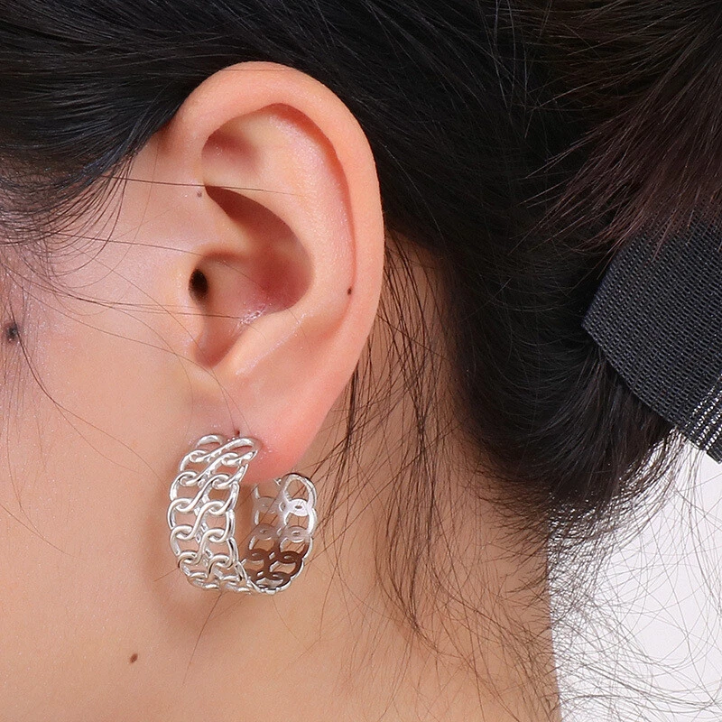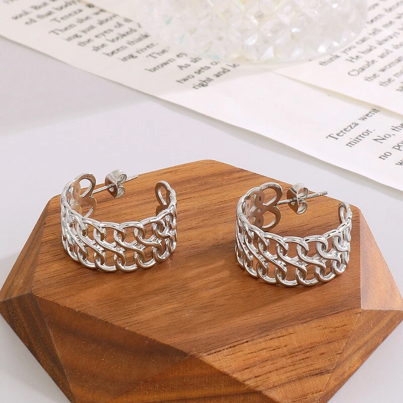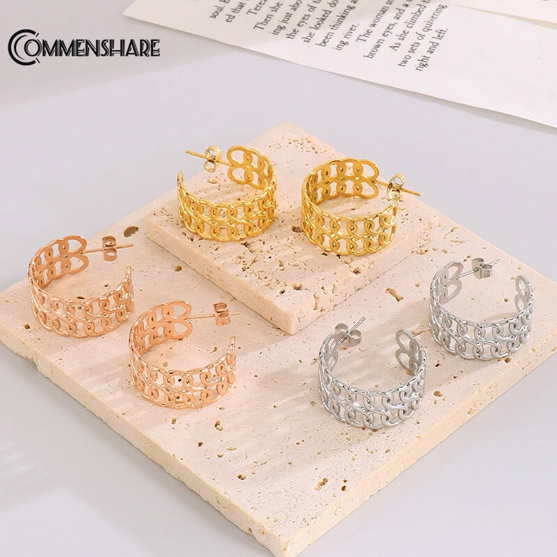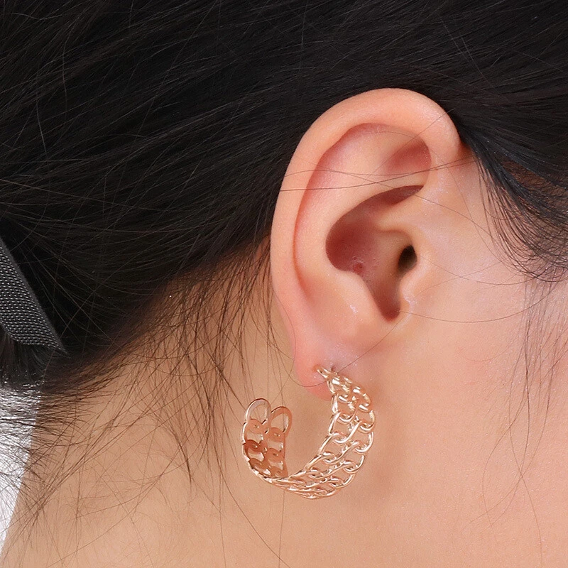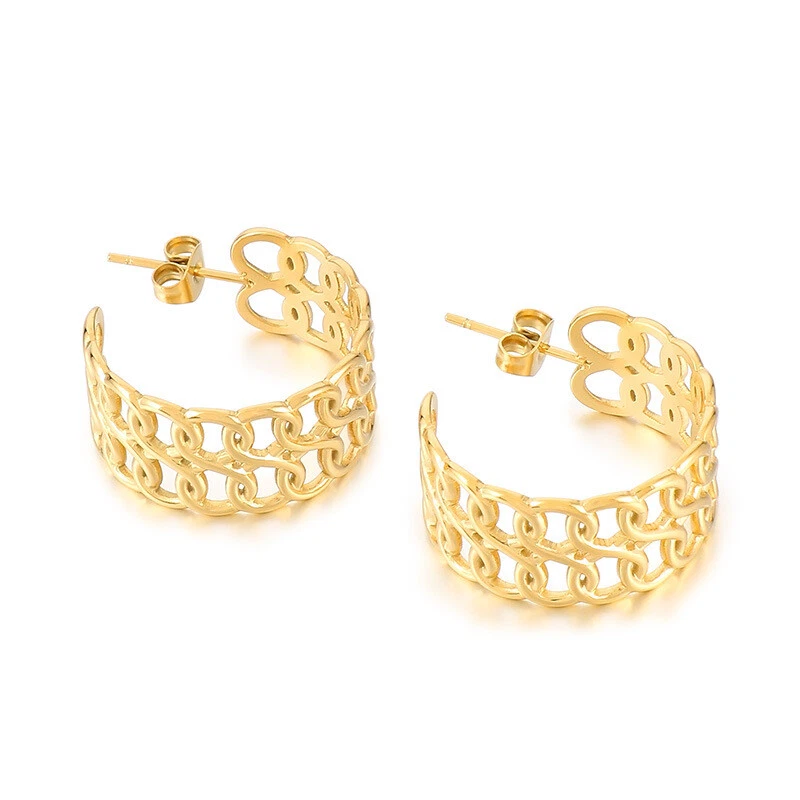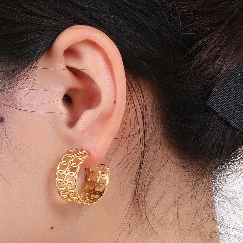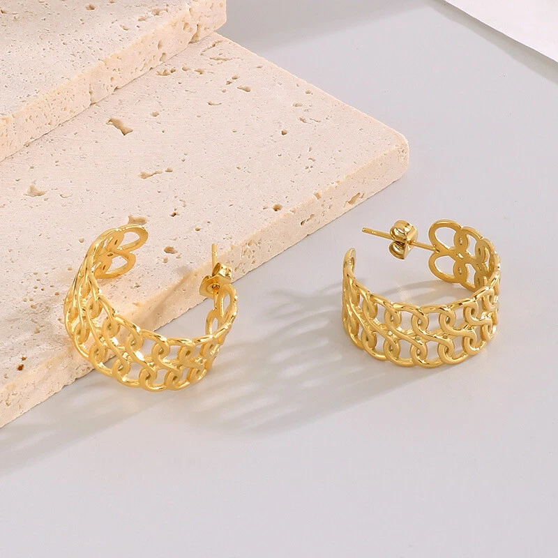 French titanium steel gold-plated earrings Vintage striped C-loop earrings