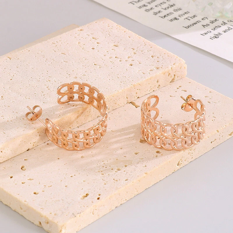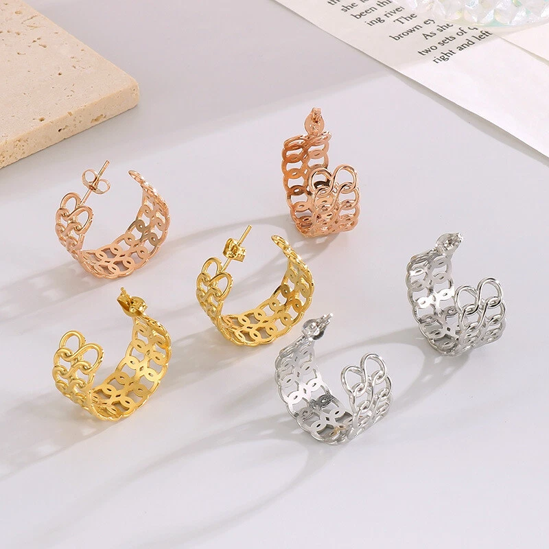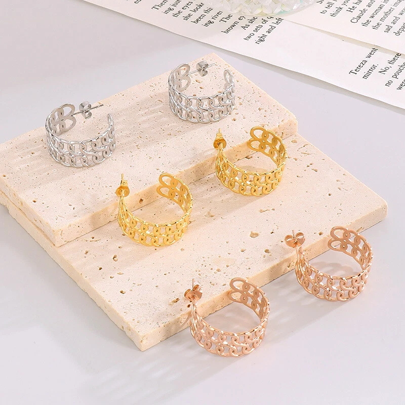 Vintage style hollow titanium steel earrings gold plated female earrings