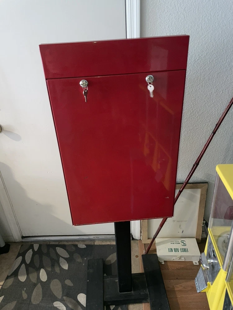 Very nice sticker vending machine four columns with keys fully functioning on a stand , local pick up only 85381 Arizona