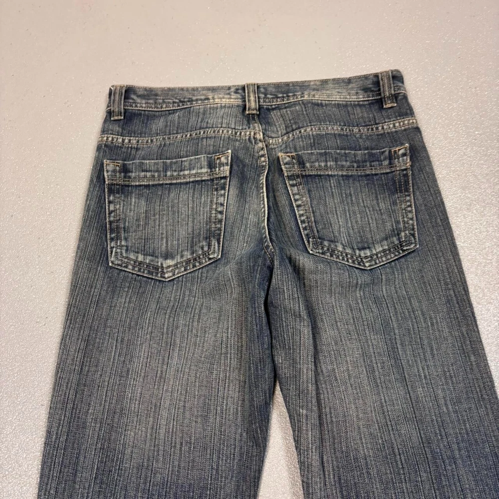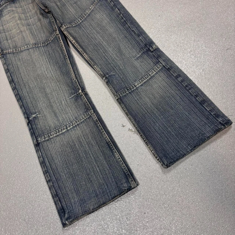 Vintage y2k 90s mud wash embroidered flared wide leg affliction style archive jeans width: 41.5cm length: 100cm