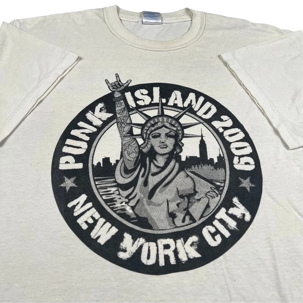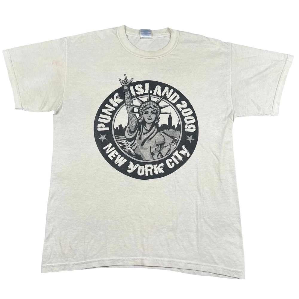 Vintage y2k punk island New York City nyc white graphic t shirt. Real nice one. Measures 20.5x27. Please check measurements before purchasing. I do my best to show any flaws in pictures. Quick shipping! Bundles encouraged! @ants_haul on Instagram.
