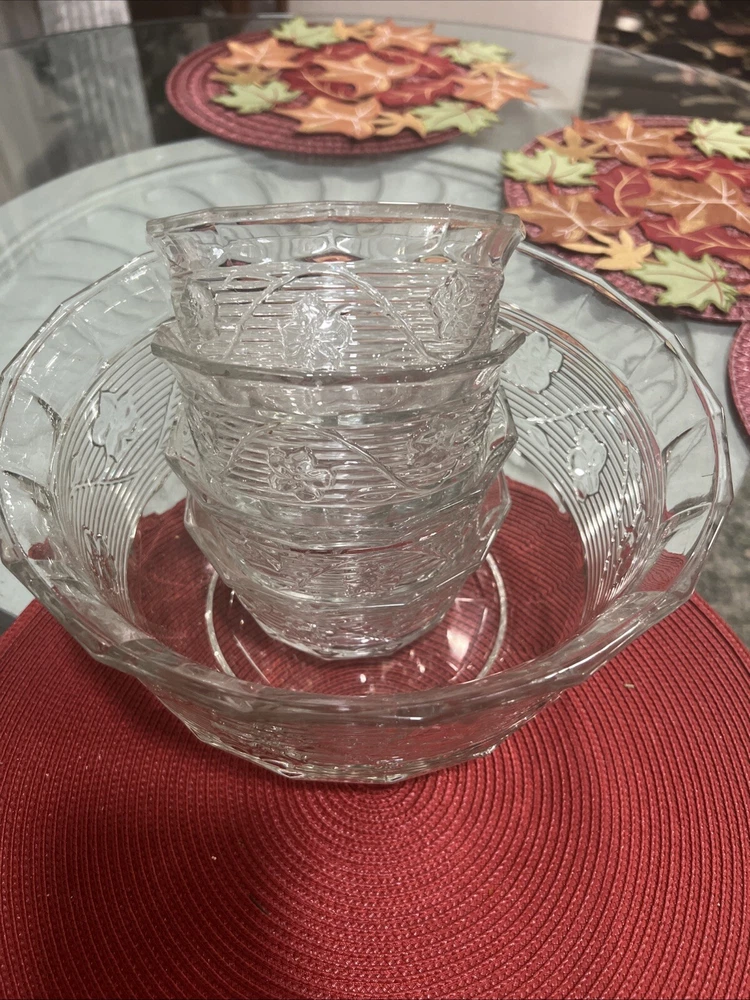 This vintage 7-piece salad set is a must-have for any Georgetown fan. The clear glass material adorned with flowers makes it an excellent addition to any table setting. The set includes a 10-1/2" serving bowl, salad bowl, spoon, and bowl set perfect for any occasion. The round shape and vintage pattern of the set are sure to impress any guest. Whether you're hosting a dinner party or having a family meal, this salad set is the perfect choice. Get your hands on this beautiful set today!