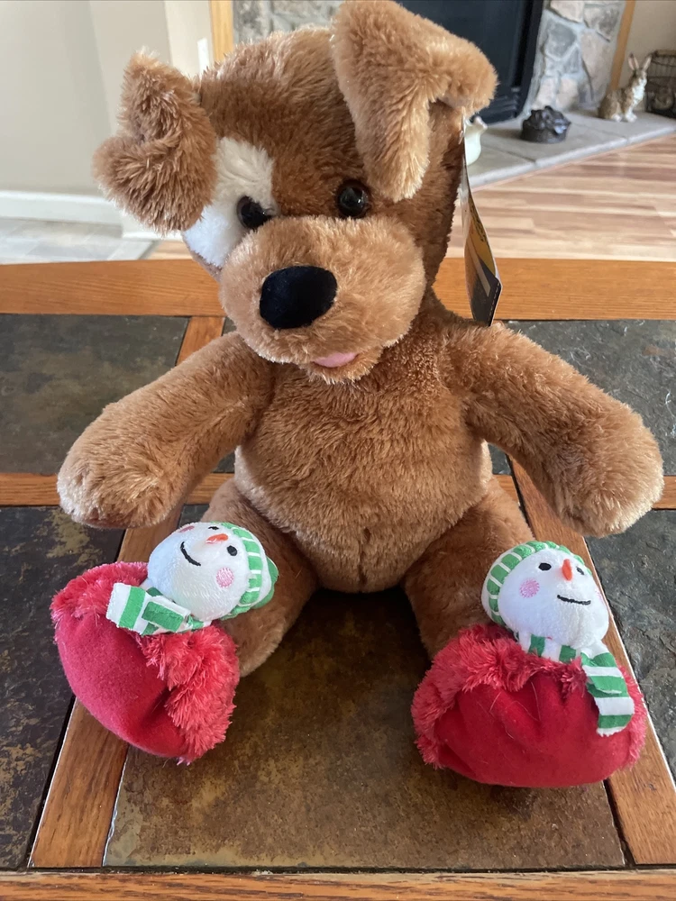 Vintage,Build -A-BEAR plush brown sugar dog, stuffed toy W/ Christmas Booties