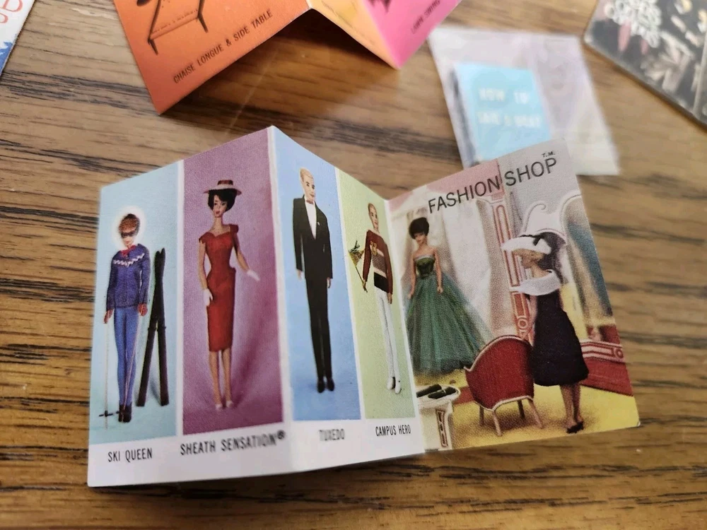 This product is a lot of ten vintage magazines from 1963 featuring Barbie fashion and home ideas. The magazines are in excellent condition and are original They include multicolor pages and are made of paper material. The magazines are compatible with 11.5 inch fashion dolls and were manufactured in Japan during the 1960s. They look great in the Barbie Fashion shop or Barbie house, one of the magazines is taped shut, all others in good condition. Please examine photos they are part of description