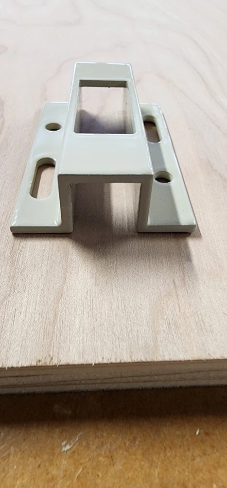 Vinyl Patio Door Lock Keep Beige. these keepers are for the Silverline Windows by Andersen. 1 11/16" wide 2 1/2" long 11/16" tall Slot for the locking arm is 1/2" wide by 1 1/4" tall If you have any question, let me know.