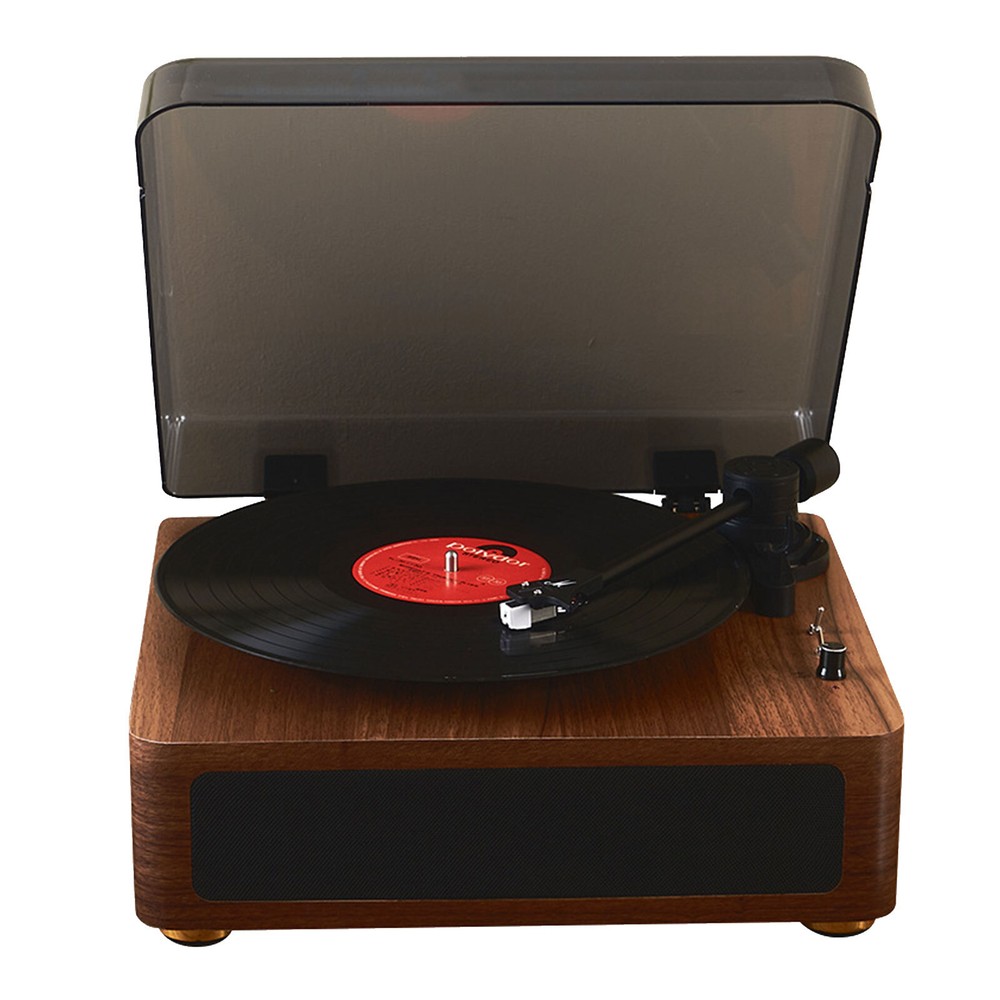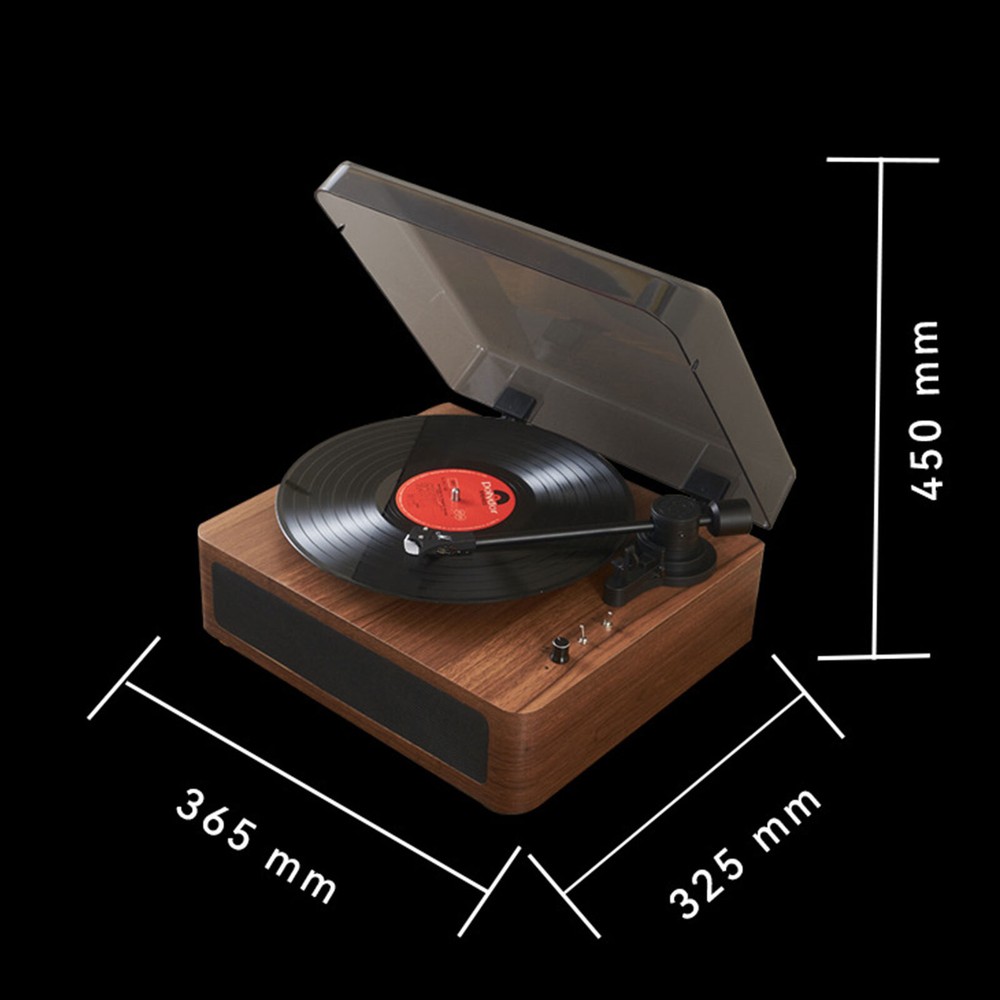 Function: 1. MM moving magnetic record player 2. Bluetooth V5.0 JL 3. Direct output 4.3.5 Audio Input Details: 1. Adapter: DC12V2A (5.5 * 2.1) 2. The phonograph split shockproof movement 3. Adjustable heavy hammer 4. Adjustable 33 and 45 speeds 5. Configuration: MM dynamic magnetic cartridge needle pressure 2.5-3.0g 6. Speaker power: 2.5 inch full frequency speaker * 2 7.56 bass disc 8. Power amplifier: 2.0 channels, 10w * 2 9.7-inch turntable 10. Support 7 inch, 10 inch and 12 inch Phonograph record