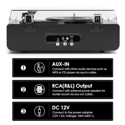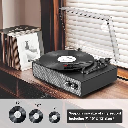 Return Policy Fast Delivery Trusted seller Vinyl Record Player with Upgraded Built-in Speakers, 3-Speed Belt-Driven Bluetooth Turntable for Vinyl Records, Black Leather Vintage Phonograph with RCA Out & AUX in, Auto Stop, MDF Cabinet Product Description 【Upgraded Built-in Stereo Speakers with Independent Acoustic Cavity】Enjoy richer, clearer sound thanks to upgraded built-in stereo speakers housed in an independent acoustic cavity. This design reduces vibration and interference, delivering balanced audio performance far beyond standard suitcase turntables 【3-Speed Belt-Driven Bluetooth Turntable】Play vinyl records at 33 1/3, 45, or 78 RPM with precision. The belt-driven system ensures stable rotation and low noise. Built-in Bluetooth lets you wirelessly stream music from smartphones or tablets with ease 【Adjustable Tonearm Weight for Enhanced Playback】Fine-tune your listening experience with the adjustable counterweight on the tonearm. This feature helps reduce skipping and distortion, protecting your records and improving stylus tracking accuracy—perfect for both beginners and audiophiles 【Vintage Aesthetic with White Wood Grain Finish】Blending timeless design with modern sound, this white wood grain vinyl player adds vintage charm to any room. It’s not just a record player—it’s a statement piece and a thoughtful gift for music lovers 【RCA Output, AUX Input, Auto Stop & MDF Cabinet】Connect to external speakers via RCA output, plug in devices through AUX input, or enjoy wireless Bluetooth streaming. The auto stop function prevents wear on your vinyl, and the MDF cabinet improves sound insulation and resonance control Shipping Returns Payment Shipping Shipping is FREE to all addresses other than APO/PO boxes in the lower 48 states. All our stock ships from US-based warehouses. Shipped via USPS or UPS (depending on location and package weight) Unless stated otherwise, all orders will ship within 24-72 hours of your payment being processed. Check our feedback to see the great reviews of FAST shipping we offer. Returns Seller does not accept returns Payment We currently accept payment via eBay managed payments only. Once payment is cleared, we will dispatch your shipment within 1-3 business days. Please refer to the "Shipping" tab for more information regarding shipping speed to your destination.