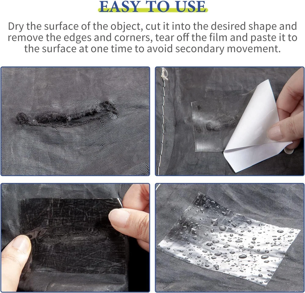 Vinyl Repair Tape Tenacious Clear Patch 1 Roll of 3.3FTx3", White,Clear Product Details Brand: TiGilt Color: White,Clear Material: Polyester Number of Items: 1 Recommended Uses For Product: Outdoor, Indoor Special Feature: Ultra Sticky,Heavy Duty,Waterproof,Tenacious Surface Recommendation: Canvas,Plastic,Cloth,Ceramic Water Resistance Level: Waterproof Size: 1 Roll of 3.3FTx3" Compatible Material: Pvc,wood,vinyl,glass,plastic,leather,paper,pool Unit Count: 1.0 Count Manufacturer: TiGilt Model: TPU-B02 Item Weight: 1.44 ounces Product Dimensions: 2 x 2 x 2.76 inches Item model number: A001-B1 Exterior: Polished Manufacturer Part Number: 168TIGL57986ABCM Special Features: Ultra Sticky,Heavy Duty,Waterproof,Tenacious Lift Type: Sticky, Repair Tape Brand: TiGilt Color: White,Clear Material: Polyester Number of Items: 1 Recommended Uses For Product: Outdoor, Indoor TiGilt Patch Repair Tape offers a tenacious tape that is perfect for repairing rips, tears, and holes in various materials, including vinyl, canvas, and fabric. This air mattress repair patch kit is heavy duty and waterproof clear, making it ideal for outdoor use. 1 Roll of 3.3ft ensures that you have enough tape to get the job done. This Vinyl repair kit for inflatables is perfect for patching up air mattresses, patio umbrella, pool covers, boat seats, and more. The kit includes durable, tenacious tape that is clear and waterproof, allowing you to create a long-lasting repair. The air mattress patch kit heavy duty makes it suitable for use in a wide variety of situations. The RV Awning Repair Tape is an essential part of any camper's toolkit. Whether you need to repair your awning, tarp, or tent, this tenacious tape will make the job easy. The kit includes vinyl patch kit for inflatables, and you can use it on any surface, thanks to its excellent adhesion properties. Keep your pool looking great with this vinyl pool patch kit. The waterproof tape clear ensures that you can patch up any holes or tears quickly and easily. The kit comes with everything you need to create a seamless, long-lasting repair, including awning repair tape and clear tenacious tape. Whether you're a camper, boater, or outdoor enthusiast, the TiGilt Tent Repair Tape has you covered. This gear aid tenacious tape repair tape is perfect for fixing rips, tears, and holes in your tent, canopy, or tonneau cover. This canvas patch kit comes with a waterproof clear tape that will keep your gear dry and protected, even in wet conditions.