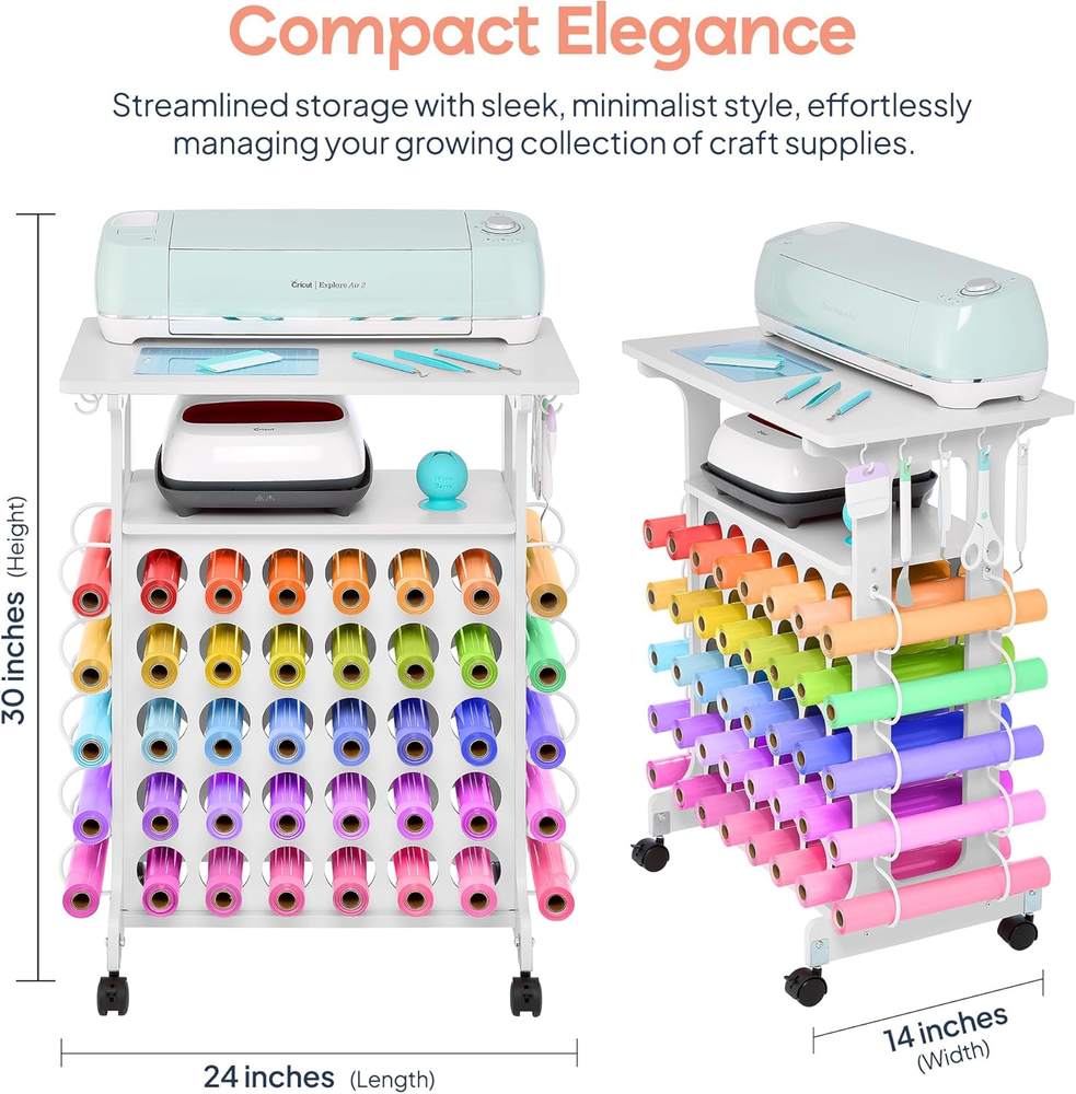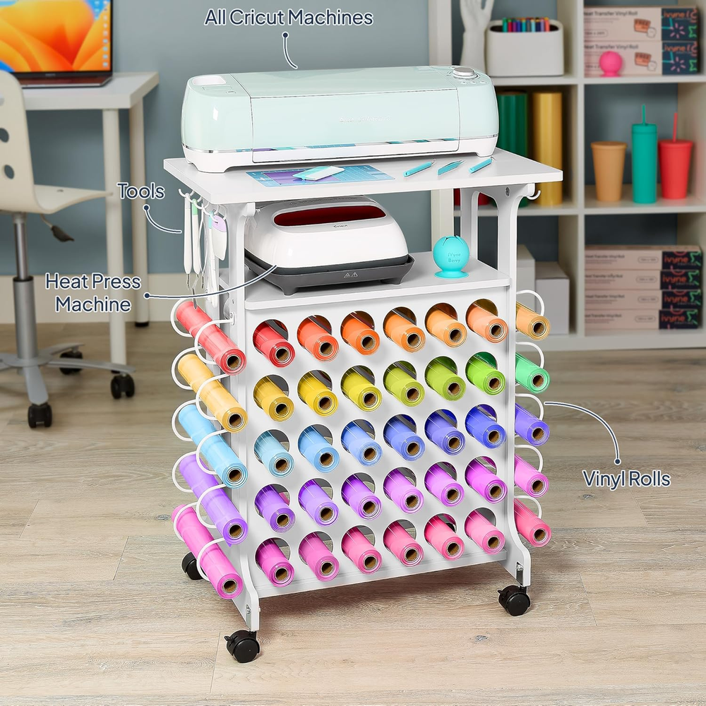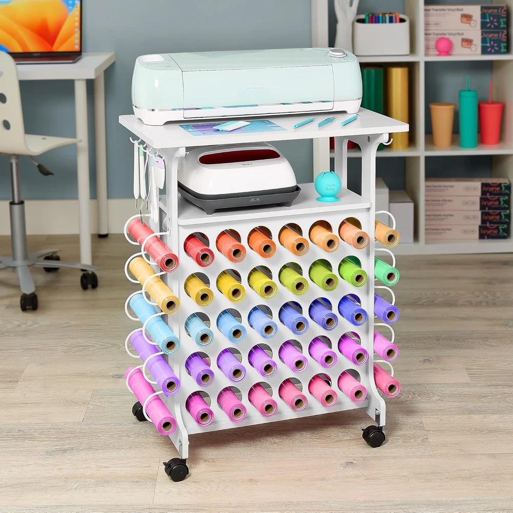 Store New Arrivals Add to Favorite View Feedback Contact Vinyl Storage Cart 40 Vinyl Roll Holders for Cricut Organization and Storage Compatible with All Cricut Machines, Compact Craft Cart with Wheels & Tool Holders for Craft Rooms - White Description Item model number Mini Metal Cart White Number of Shelves 1 Assembly Required Yes Color White Product Dimensions 1"D x 1"W x 1"H Material Metal Item Weight 1 pounds Handle Material Metal Frame Material Metal Caster Type Swivel Number of Wheels 4 Target Audience Unisex Adult Weight Limit 80 Pounds Tailored for All Cricut Machines - Perfectly designed for all Cricut Machines, offering a dedicated top shelf and a second self for Heat press and other accessories like cutting mats, iVyne light pad, iVyne berry and vinyl weeding tools for easy access during your crafting sessions Maximized Vinyl Storage - Holds up to 40 vinyl rolls, keeping your materials neatly organized and easily accessible, ideal for serious crafters with a growing collection Compact & Efficient Design - Measuring 24" L x 14" W x 30" H, this crafting desk fits seamlessly into small spaces, making it the perfect solution for optimizing your craft room or workspace Smooth & Secure Mobility - Features four 360° swivel wheels, including two with brakes, allowing for easy movement and secure positioning wherever you need it in your crafting area Durable & Sturdy Build - Constructed from premium MDF with a robust frame, this cart supports up to 80 lbs, ensuring long-lasting stability even when fully loaded All-In-One Craft Organizer - Equipped with a spacious shelfs and side hooks for tools, this versatile cart keeps all your crafting essentials in one place, helping you maintain a tidy and efficient workspace Mini Metal Cart Pink ABOUT US We offer the best prices around on high quality products. Our E-store includes media such as books, movies, music and games while offering electronics, toys, sporting apparel, clothing, tools, general home, garden items and more. SHIPPING We are always working hard to ensure your package arrives as soon as possible. Please understand that some factors like weather, high postal traffic, and the performance of shipping companies are outside of our control. We offer free shipping to the lower 48 states and ship within 2 business days of payment, usually sooner. We do not accept P.O. Boxes. Please provide a physical address. RETURNS We offer a 30-Day Return Policy on items which you are not completely satisfied with. You have the option for a full-refund or an exchange of the item. No returns are available on items shipped outside of the USA. PAYMENT We accept PayPal. CONTACT US This page content is yet to come Please ad us to your favorite seller and visit again later Thank You CUSTOMER SATISFACTION We try our very best to make sure every customer is completely satisfied. If there's a problem, message us! We're happy to help.
