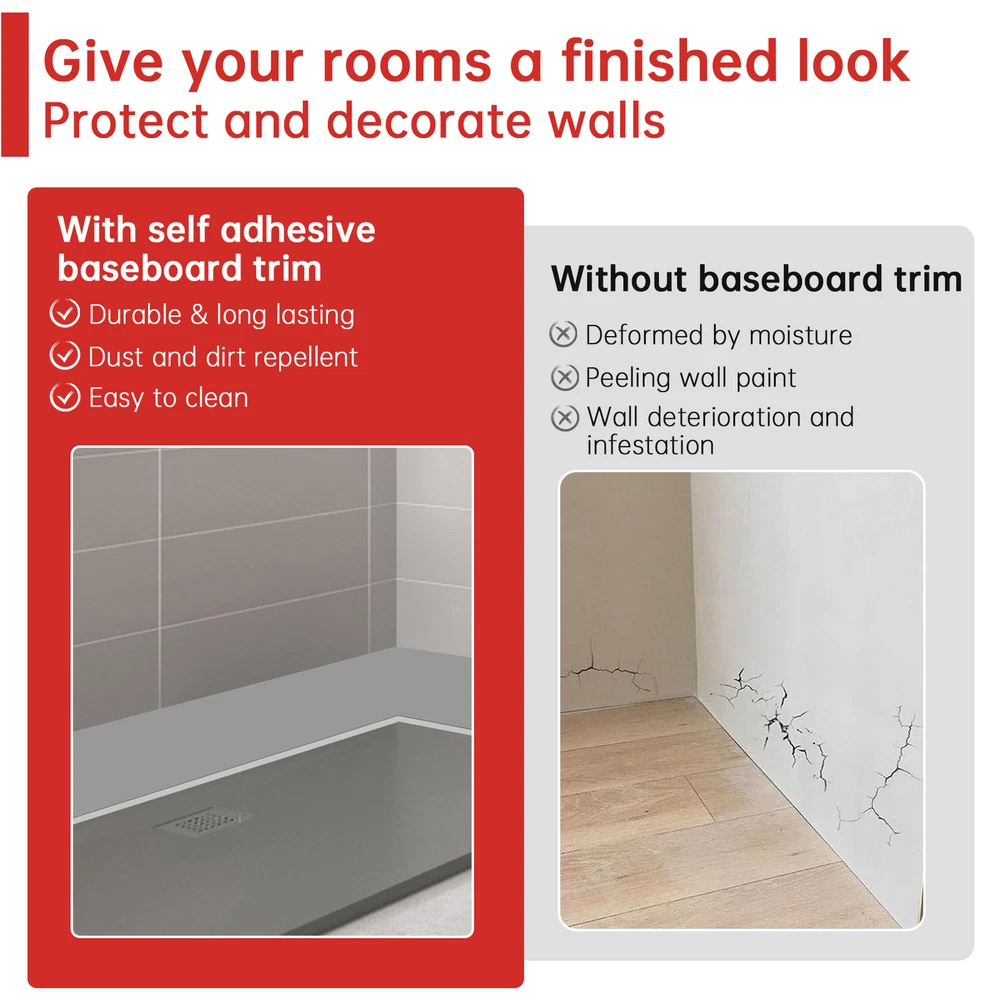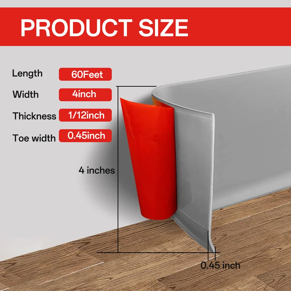 Vinyl Wall Base Baseboard Molding Trim 4"x 60FT Flexible Self Adhesive Grey