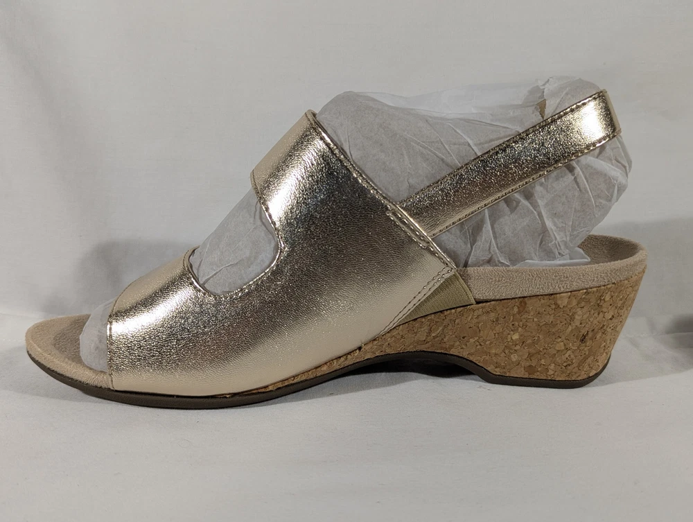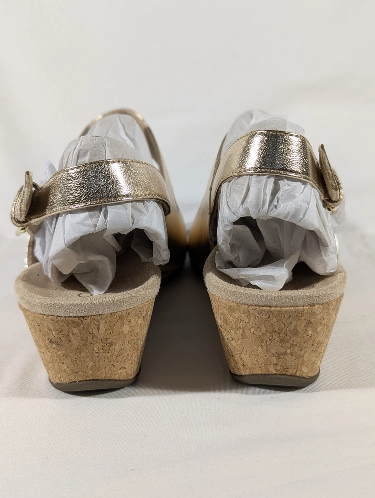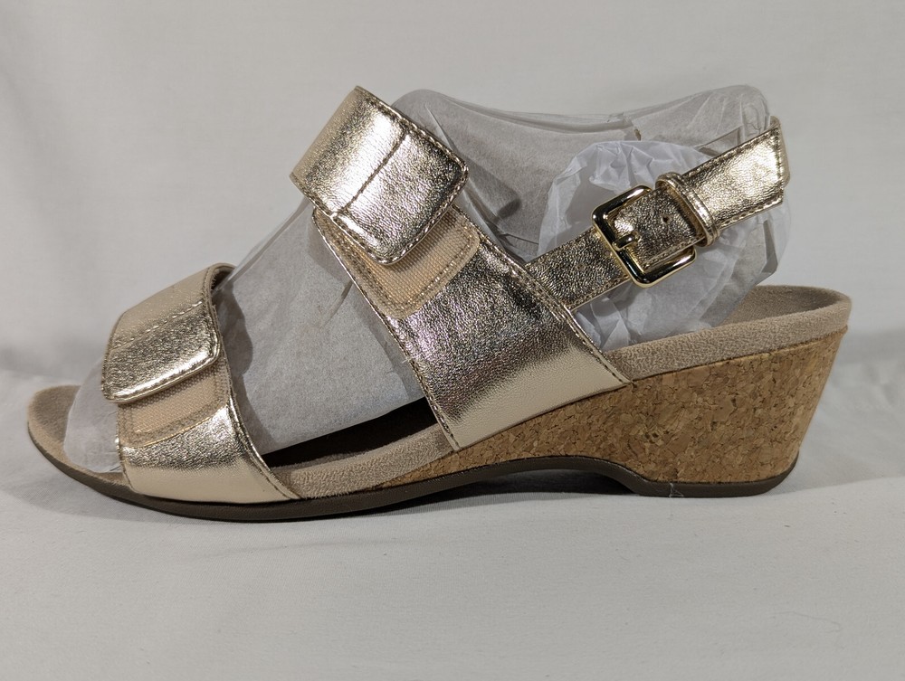 Vionic Marian Women Gold Wedge Sandals Size 9 Wide with box New CONDITION Overall excellent condition. Very minor mark on the top of the left shoe. No other damage. Look at the pictures closely as this is the exact item you're purchasing AND IS AS IS. Please ask any questions before buying. Disclaimer ** Please note: We put up a varied collection of items and are not experts in every area, so descriptions are our best guess as to what something is. We try to research each item to the best of our ability, but it is the buyer's responsibility to know what they are buying. ** Payments Payment is due the day of the sale or close of auction. Shipping We use eBay's calculated shipping to determine the cost based on the size & weight of the box, along with the shipping destination. Occasionally eBay's calculated shipping may over-calculate. We refund any overages that may occur. Click here to view our other auctions and items for sale. We ship to the U.S. and internationally through the eBay International Shipping program.