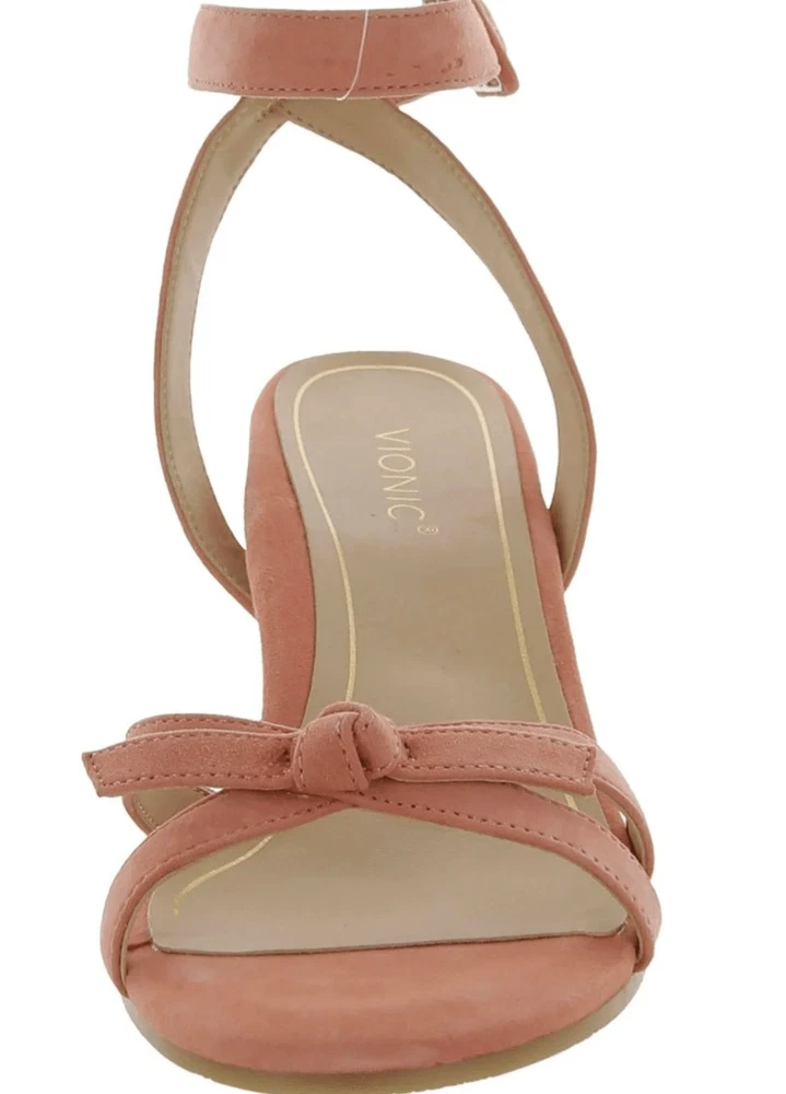 Exterior Color: Pink Brand: Vionic Type: Heel Accents: Bow Department: Women Upper Material: Suede Style: Strappy Color: Pink US Shoe Size: 7 Closure: Tie