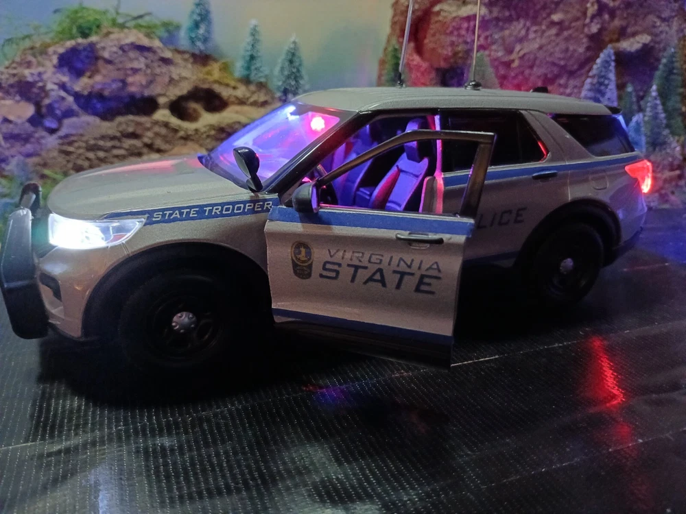 Hey guys! This is one of my pride and joy vehicles. I believe this is the 250th Virginia State Police Vehicle I have made since 2012. My first vehicle was a 1/18 Crown Vic for a Trooper out of Fluvanna County. I have enjoyed making each and everyone one of these and thank all my returning customers! Especially a great Special Agent who has probably got 100 of the vehicles I have done if not more haha. So... Onward 13 years in the future and I have done Fury's, Galaxies, Box Caprices (one of them to be listed as well soon), Bubble Caprices, Vics, few Tahoes for the CDL Check point Troopers, then we get to the chargers and last but not least the Taurus's and Ford Explorers. I think the explorers will probably be around for a while. So this auction is for a 2024 Ford Explorer 1/24 scale. This model was bought new. Now as many custom folks I am not perfect. I am far from it but I do try and keep my prices down. I see them for sale on etsy for 250 to 400 bucks. These take about two days to make and to me its alot of fun and a relaxing hobby. I wish I could make them for free. I would give them away... If you looked at the photos you may have noticed I left the tag blank. I will be happy to make any type of tag you want... Maybe with your tag number or your badge number or name on it. I can just make up anything as long as I can fit it on the tag..... I normally make a state trooper tag that they have currently with put the Number 1 on it. If I don't hear from you then I will put that on the model. So just contact me after you win and let me know what you'd like. I have the factory box that it came in. This unit is powered by a 9 volt battery. I will include 2 of them so you can enjoy the vehicle for a while. It flashes for about a day before the lights start diming. I left it on from 6pm when I finished it and let it burn all night and came back the next day at noon and it was still going. Then around 4pm you could see the lights starting to dim some so Id say about a day on these Heavy duty 9 volt batteries I will provide. It only uses one at a time. It might go longer on an energizer or Duracell but I do like these heavy duty batteries from Roses Dept store. They are 2 for a dollar. Pretty good deal and they do last a good while. I was looking for prices to go up but they kept them at a buck for 2. so again i will include 2 batteries for you to enjoy the car for a bit. I put two antennas on the top. and the two front doors open up... If you have any questions please feel free to let me know. These normally sell quick using the offer button so please dont hesitate. I meant to get these cars Im doing out before Christmas but my wifes health has been rocky and the bills are starting to pile up so I am very grateful to all my customers and love going above and beyond to ensure they like what they get. These make wonderful gifts. I bought one for myself and thats how I got interested into doing them. Soon as its arrived I took it apart and looked how they made it This ships again in the factory box it came with and will be bubble wrapped to prevent any damage. Ships either USPS, UPS or Fed EX but the box will be marked FRAGILE..Handle with care! Thanks for looking and Happy New Year!