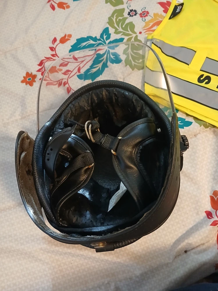 Virginia state Police Helmet. Has face shield and a back piece that comes off. The date on it says SEPT. 188 Im guessing that September 1988 but not a 100% sure. I will let you do the detective work. The inside foam needs replaced. Im sure some motorcycle shop can get it for you. Keep in mind that this is used and has scratches since it was used in the line of duty. Medium. by Premier Crown Corp Raleigh NC 27622 The Grey and Blue helmet would be great addition to your VSP collection! I enjoying collecting VSP license plates by the way :) Will be carefully boxed up and shipped withing 24 hours of receiving your payment! Thanks for looking and have a great day.